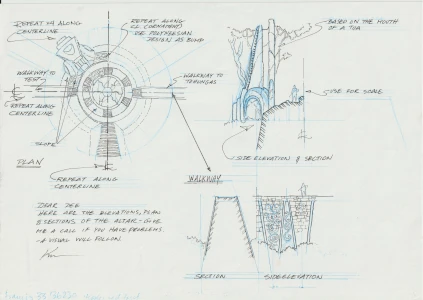 E: The art that you posted on your site, it was cool to see, when that came to light. Because it was sort of like ‘Oh, you can kind of see in the disc, you can see the temple from this angle but its not quite clear how this part works’. Seeing this whole production art layout, like, ‘Here’s how the whole thing is designed! And here’s how the walkways work!’ It was like seeing things in a new light that people hadn’t been able to see before.