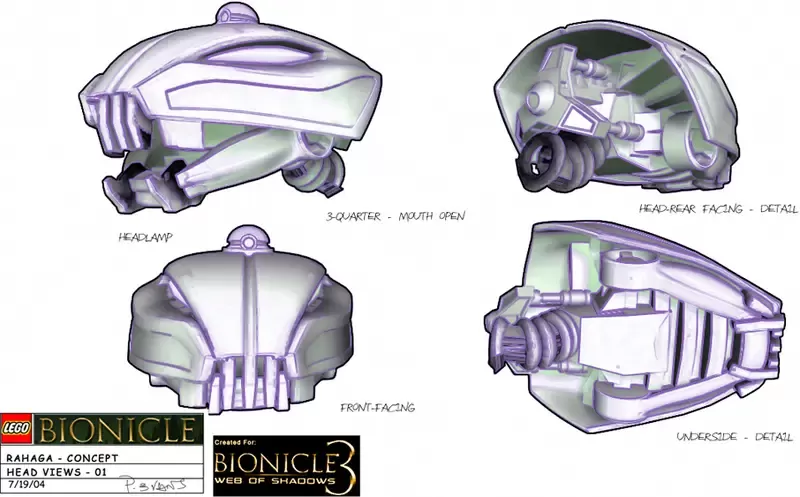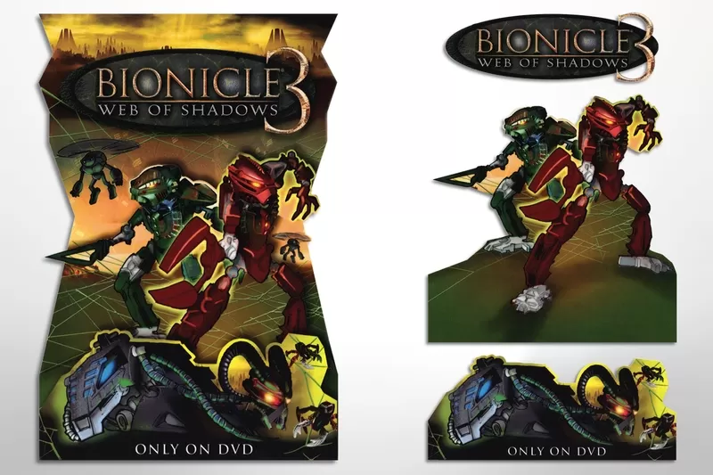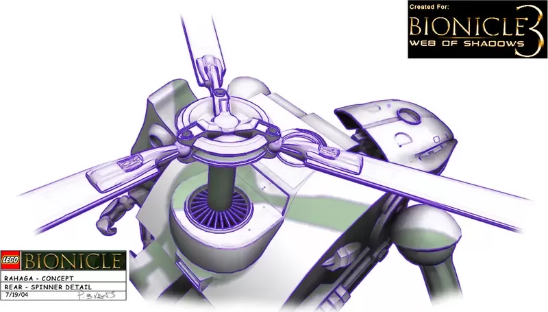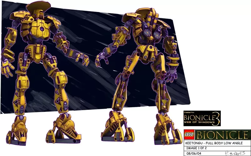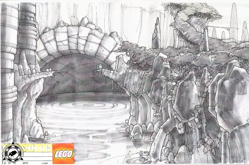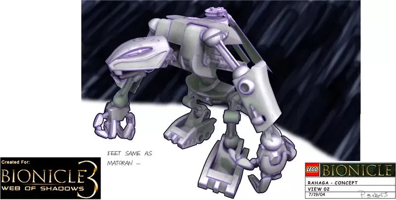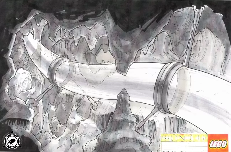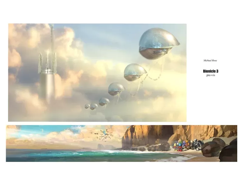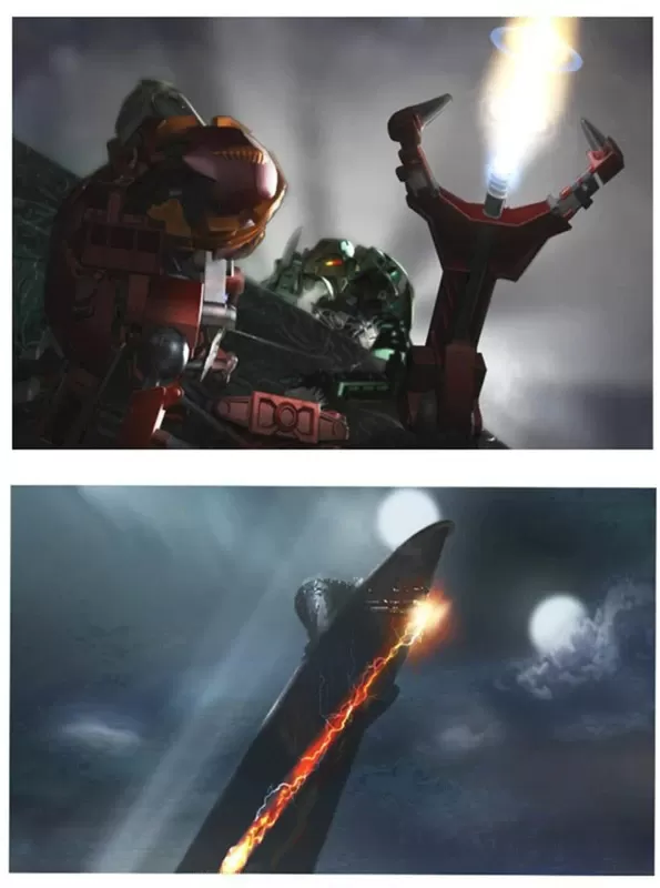 Some art by Michael Rose has an unclear relationship with the production of the film. One has a Transformers Megatron from 2007 edited in, and another has a fan-made Makuta model that also post-dates Web of Shadows. Rose’s other pieces may have been subject to simliar revisions before being shared on his online portfolio, where the images come from.