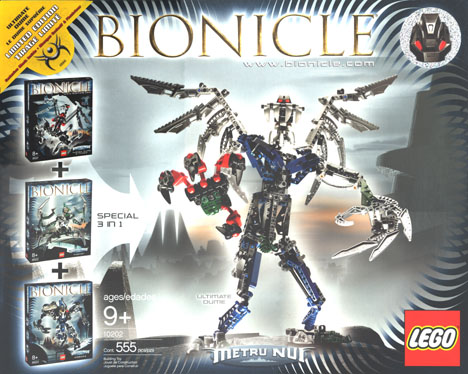 I have been looking to scan the box of 10202 ULTIMATE DUME ever since it was originally released. The poor thing has been sitting behind my chair for half-a-year. I still plan to build it and give you a full review, but enjoy the box for now. Note that this is the Toys “R” Us version with the exclusive Limited Edition mask. That information is conveyed by stickers applied to the top corners of the front of the box. Unlike the quickly-vanishing TAKUTANUVA set , this one is still available online and at most Toys “R” Us stores.