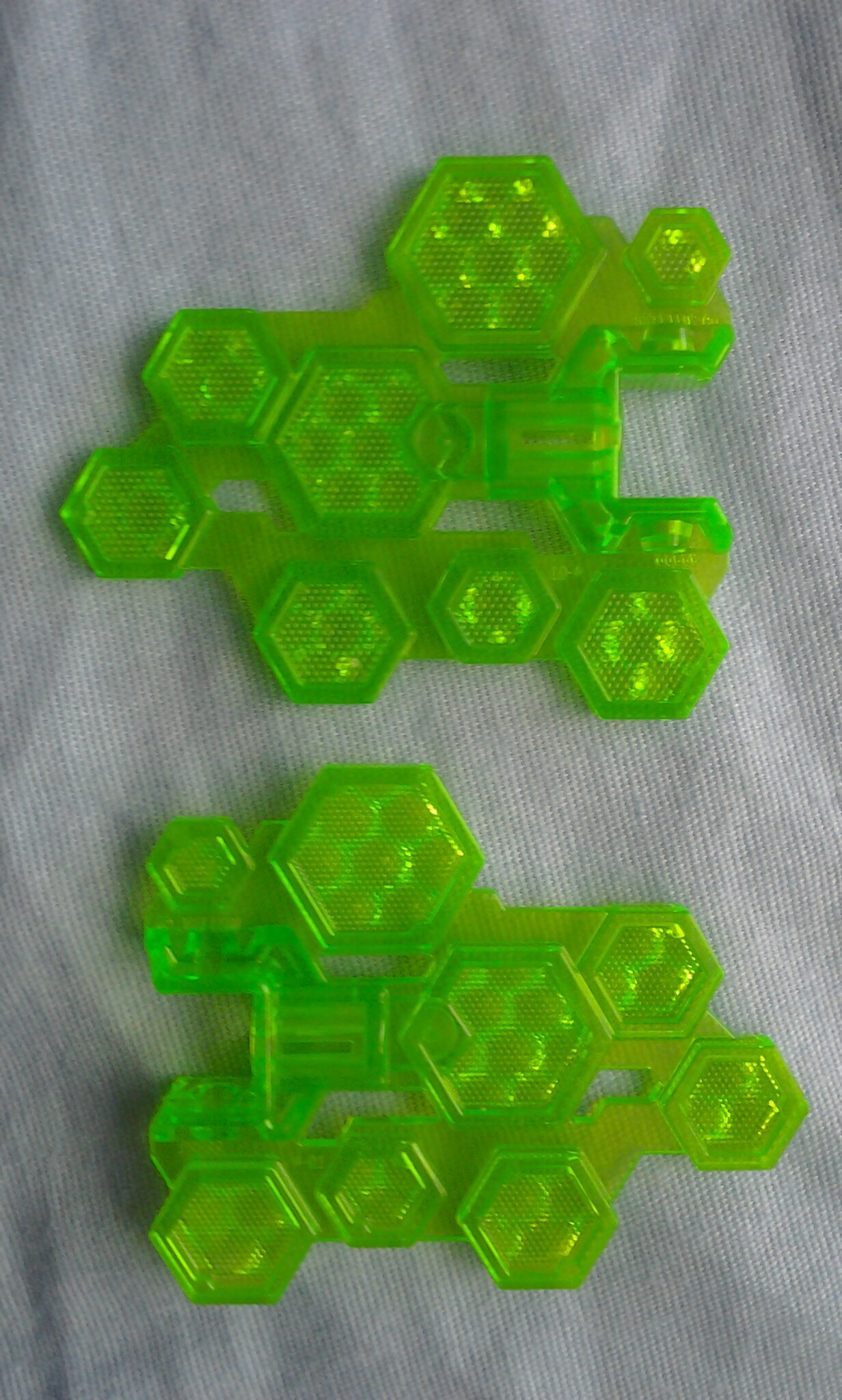Another great new part is the energy shield plate. When you look at the packaging, you can’t tell that it has a sort of textured, almost holographic visual effect. Within each of the hexagons is a texture that creates an inner honeycomb pattern, and moving it around makes the inner honeycomb shift around with it. It kind of reminds me Gorast’s wings. It’s just big enough for some great MOCing, though I would love for an even larger version to be released, with different colors available.