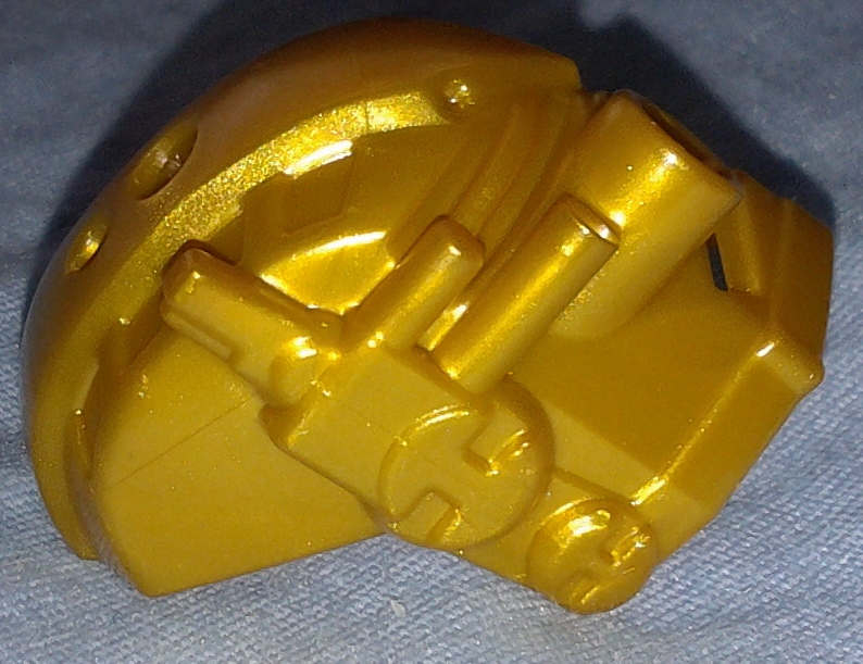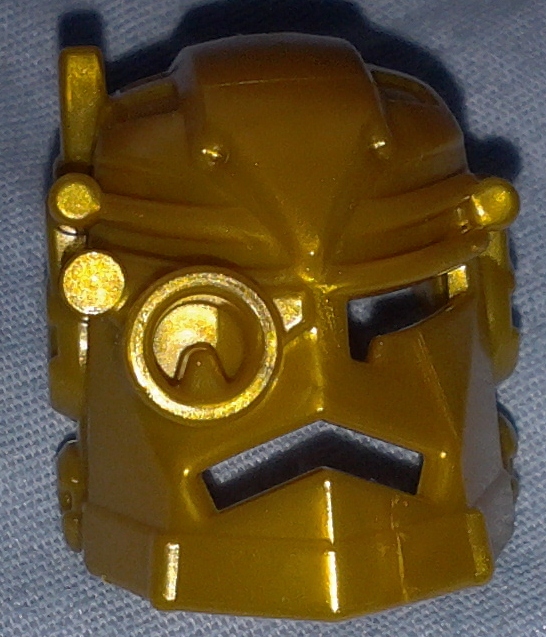 I couldn’t decide whether to call it Steampunk or IronKopaka #after Ironman#, it’s almost a mix right down the middle between the two styles, especially in his particular shade of gold. Of the new helmets, it is my favorite, I really hope it is released in white, or a more MOC neutral color.