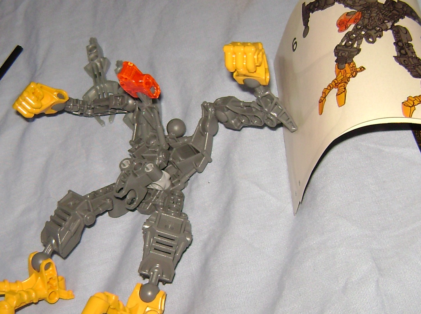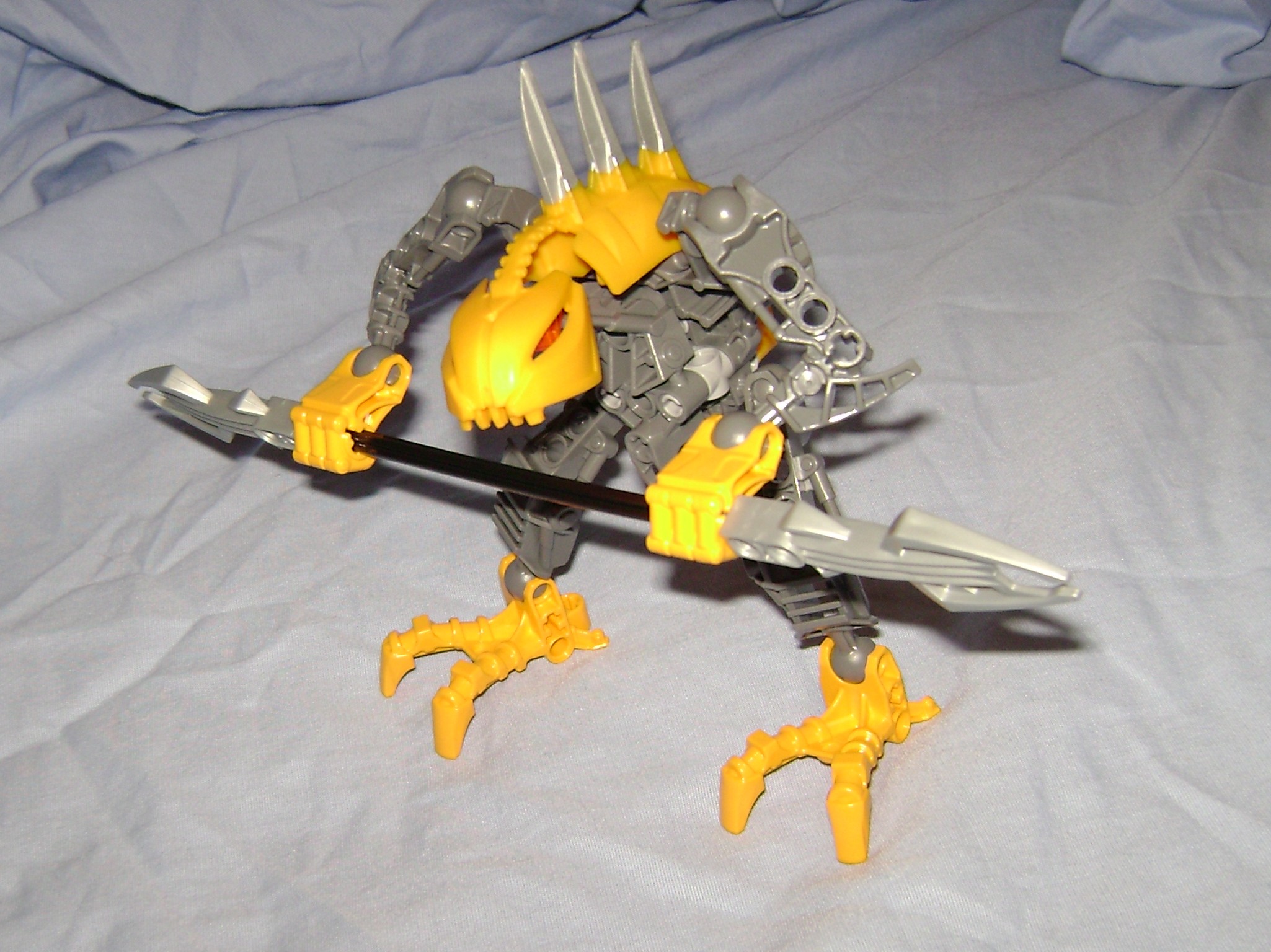 This is the final product here, the yellow on dark gray looks good, but maybe a little more yellow on the limbs or torso could have helped. I would have made the middle bar of the staff light gray to match the silver weapon parts and clash with the dark gray body to make the staff stand out.
