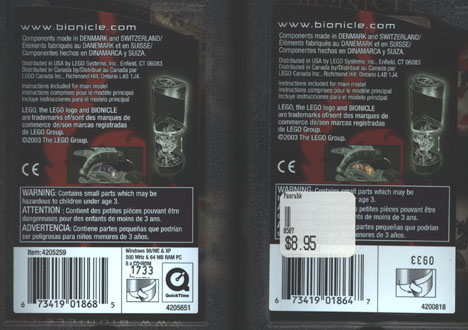 As you may know, there are six different Mini CD-ROMs which are included with the six different RAHKSHI sometimes. Like the original TOA, only some of the RAHKSHI canisters include the Mini CD-ROMs. For example, all of the VORAHK at the LEGO® Outlet Store in the Potomac Mills Mall in Virginia contain the VORAHK Mini CD-ROM shown above, but none of the PANRAHK in the same display contained any Mini CD-ROMs.