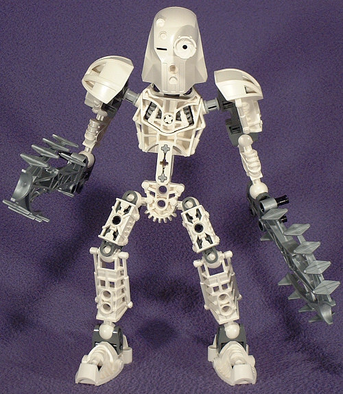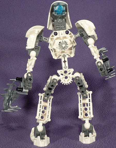 I like the look of most of the KANOHI, with all the interesting geometric combinations, but the giganormous eyeport is all wrong. I’m also not sure why a KANOHI of Telekenisis would still be using the motif of the KANOHI of Vision. The little tiny slot for the right eye is actually realistic, as the Eskimos tradtionally used a strap of leather with two tiny slits in it as a early form of sunglasses because it reduces the total amount of light that gets to the eye.
