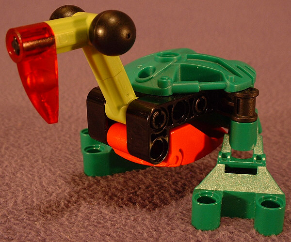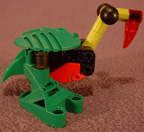 As a flightless bird, one doesn’t exactly expect to see large wings on it, but the LEHVAK hand-shield seems to have been placed there for that purpose. Once again the non-symmetrical shape makes that piece look very much out of place in this design. Unfortunately, with any other existing hand-shield on its back, the bright green parts would look completely out of place. And I’m not exactly sure why, but the gigantic black eyes look a bit unnerving on this design. I do realize that this design was created solely from the pieces available in two sets, but I really think it could be significantly improved by the replacement of as many black parts as possible.