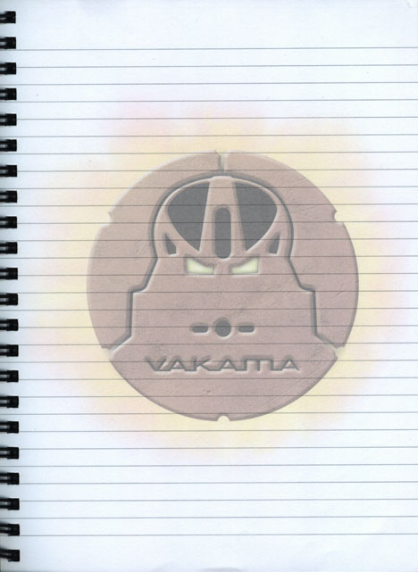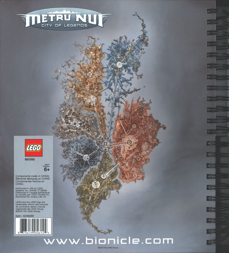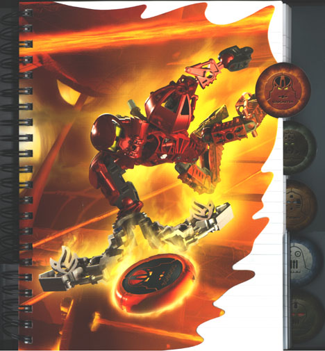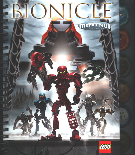 The Metru Nui TOA METRU wire-bound notebook features the six TOA METRU in the 2004 Key Graphic image on its front cover and a map of Metru Nui on its back cover.