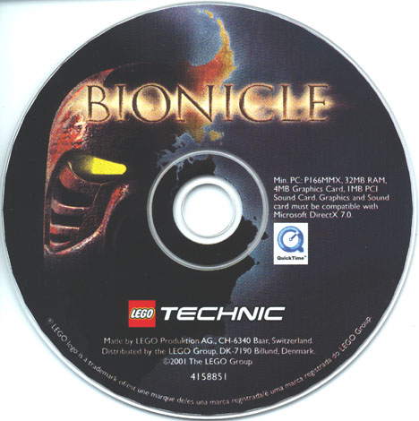 The technical support section of the old, pre-Metru Nui BIONICLE.com mentioned a full-size promotional CD-ROM in the same sentence as the original 2001 TOA Mini CD-ROM discs, but it took me years to actually find one. Here it is, part number 4158851, “Bionicle Promotion CD, 1.00, International.”