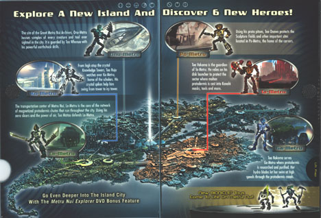 The whole reason for an outer box for the DVD is this inside flap on the front. It displays a great 3D-view of Metru Nui with background information on the six TOA METRU and the Metru from which they come.
