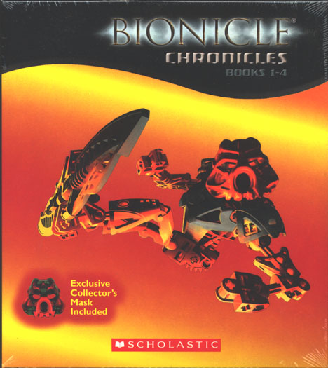 The BIONICLE® CHRONICLES box set is now available at select book sellers. The set includes books #1 – #4 in the series and a Poisoned HAU NUVA collectible mask. The mask is packed in the shrink-wrapped box behind the books. If you have a couple of the books already and don’t want additional copies, you might find a better deal on the mask on BrickLink or eBay . Forum Link