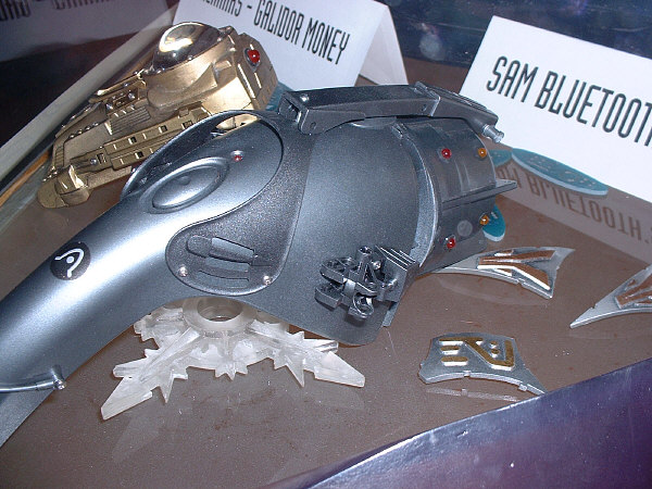 Here are a couple shots of some of the props that were on display at the GALIDOR™ party on Monday evening. If you look closely, on the one that looks vaguely like a gun, there is a TOA foot on each side, and two full bushings at the top of the end of the ‘barrel’. The other prop is resting on three TOA arms that were used as legs.