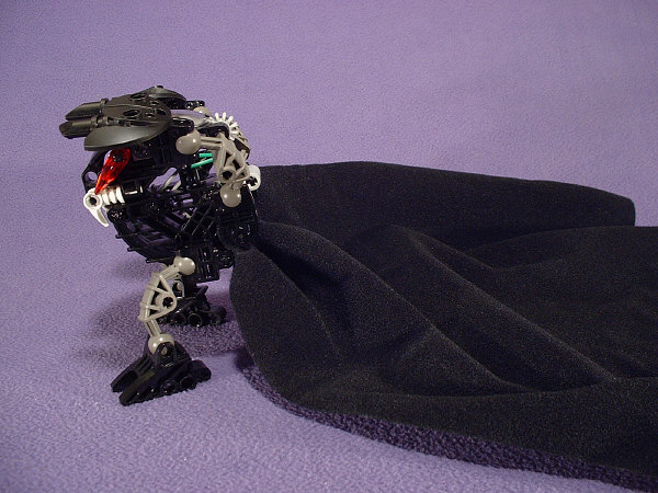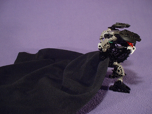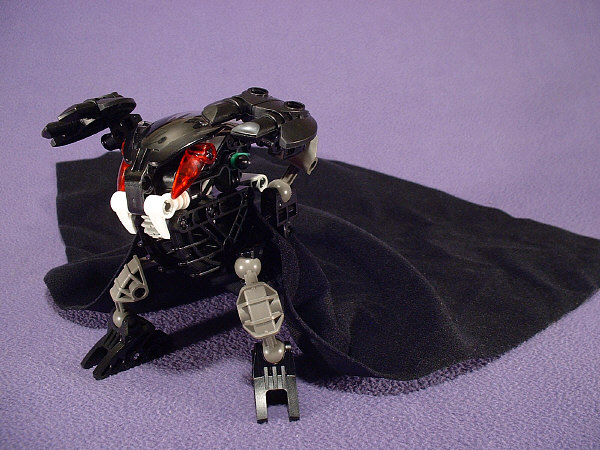 This is the second in what I hope will be an annual series of Halloween MOCs. About half a year ago, I got a message from JW suggesting that if you flipped a BOHROK’S teeth upside-down, they’d look like vampire fangs. I found it to be so amusing that I couldn’t resist putting together a MOC that uses them. As MOCs go, it’s about as simple as they get, using just a basic NUHVOK with it’s teeth flipped upside-down, a pair of LEHVAK eyes, a black VU, and a spare Darth Vader cape (because it wouldn’t look half as amusing without a cape that’s over twice as long as it is tall).