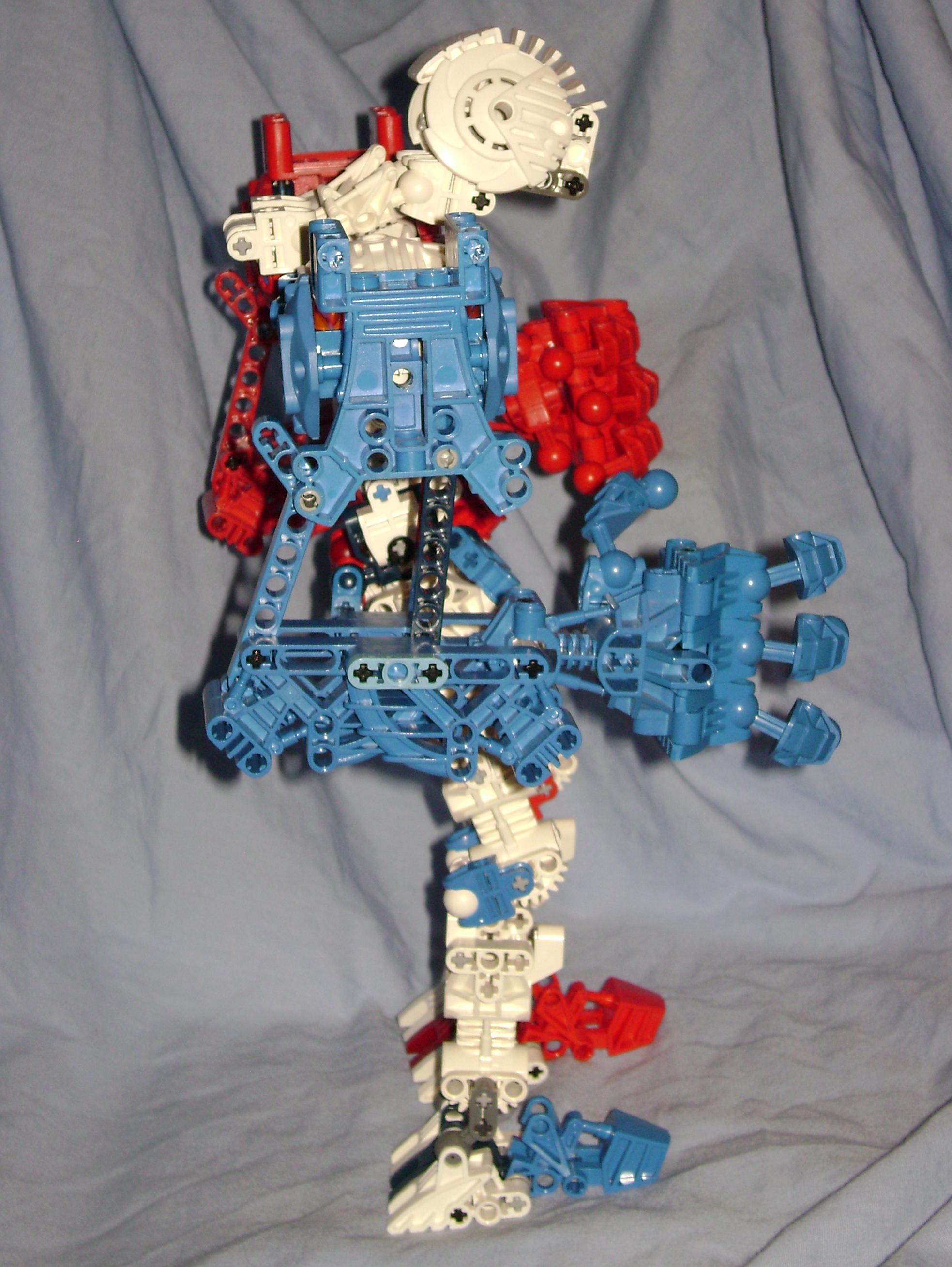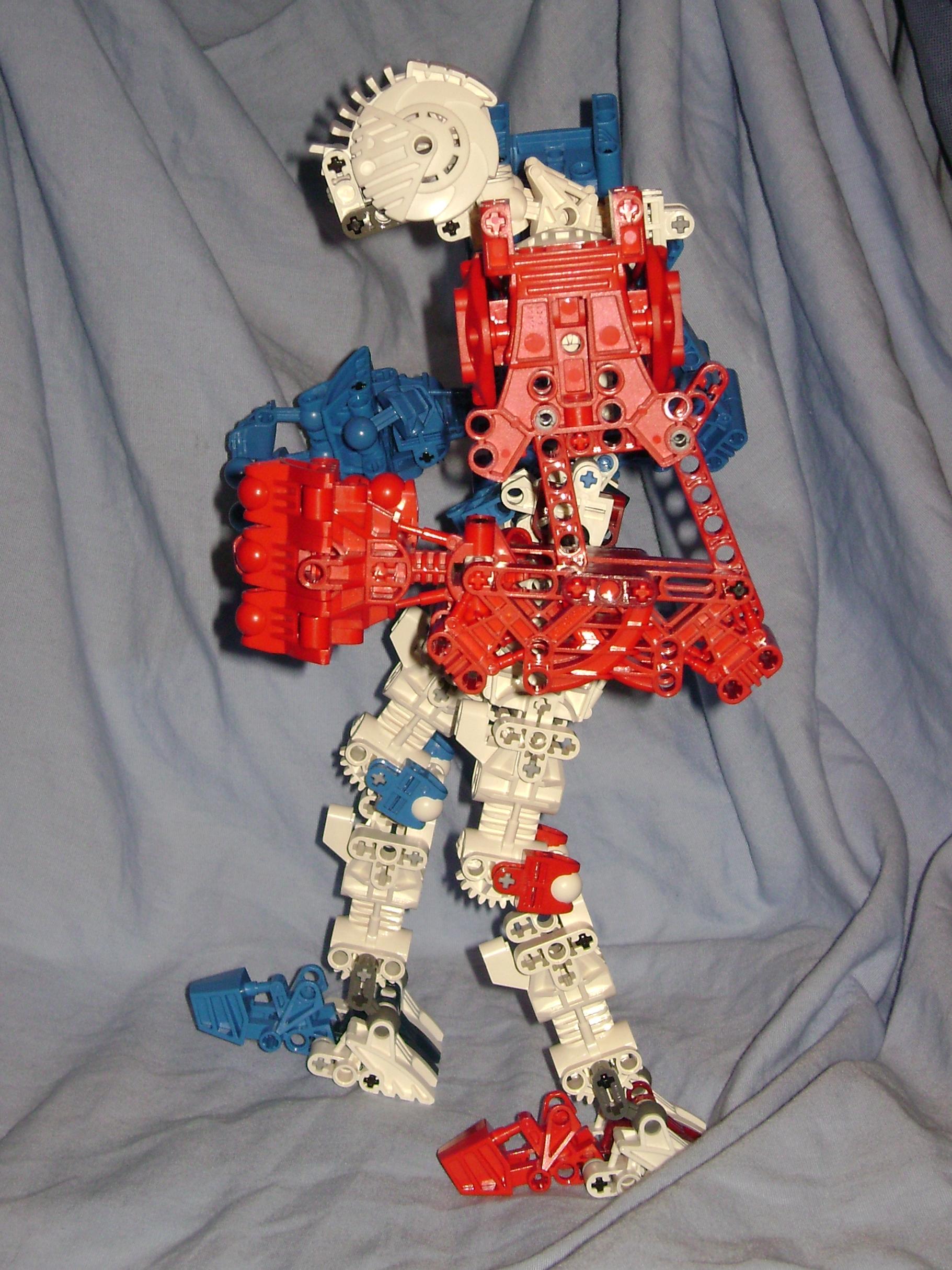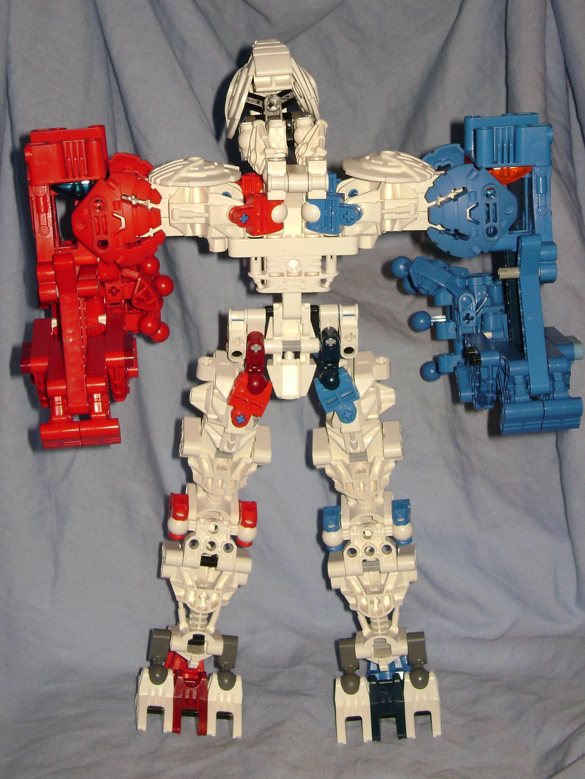The only planned thing about this MOC was the colorscheme (red white and blue after the American flag) and the humanoid form. The head is actually based on another forum member’s design made years ago, I just popped it off a MOC I never finished and onto this one since it was just the right color and size.