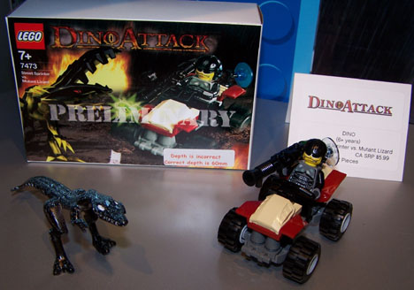 Move over Jurassic Park, here comes “DINO ATTACK!” The exclamation point is mine, but I just can’t write “DINO ATTACK!” without it. The sets and images on the boxes you see here are all preliminary, so perhaps The LEGO Group will add it, but I doubt it.