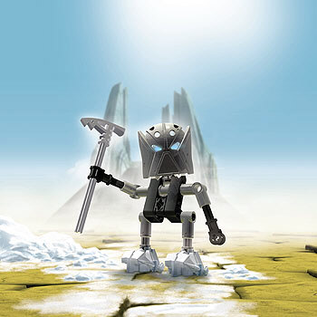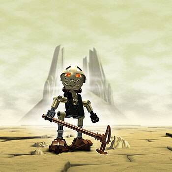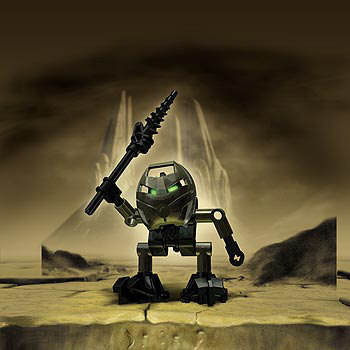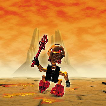 The TURAGA are the leaders of the six island villages. They are also supposed to fill the Sidekick role for the TOA Hero characters. It is their job to help their respective TOA characters on their search for the twelve different MASKS. At a price point that is less than half of what the TOA sets cost, they have a much more simple design, but oddly they have more effective attacks. The design of the attack mechanism involves a lever that sticks out of the back of the character and is attached to the right arm. A rubber band looped around the lever and the TURAGA’s neck replaces the fancy gear system of the TOA, but allows for a much more forceful attack. Also, with the lack of ball-joint pieces anywhere, the full force of the attack will transfer to the target, whereas the TOA arms tend to backslip upon impact and not really hit very hard as a result. Due to the small size of the TURAGA, there isn’t much beyond color to make them different from each other, so some of the length of arms, legs, or necks varies between the models to create the appearance of different body stature. The coolest thing about them is that unlike the TOA characters, who all have light grey heads, the TURAGA all have heads that match the primary color of their particular element. As a result they don’t look as weird when not wearing a MASK.