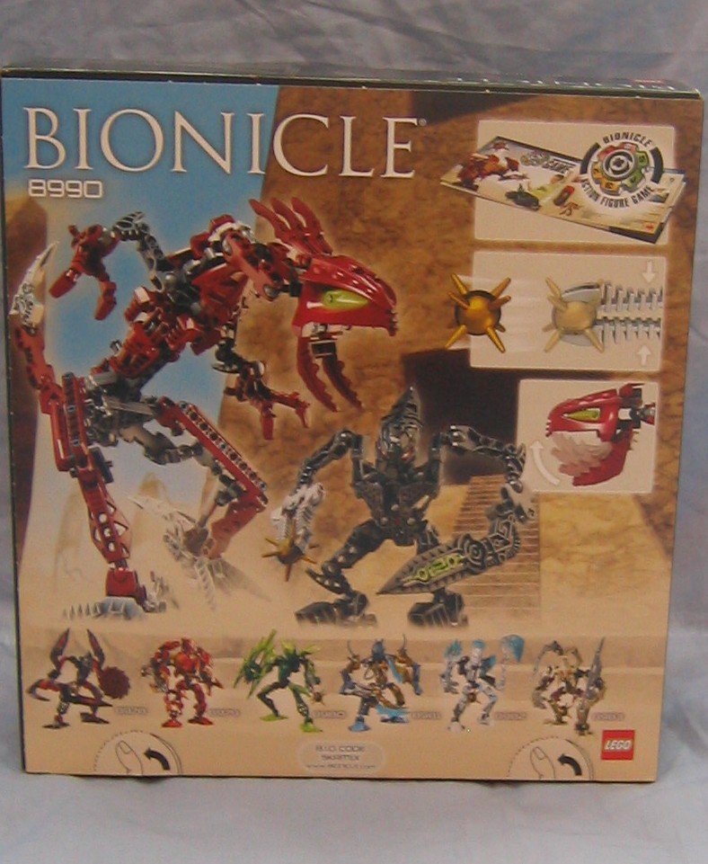 Looking at the graphics on the box, you will see the professional work of the photographers who always tend to get that pefect shot which demonstrates the model from the best possible view. You can see some interesting background CG work that gives us a look at what seems to be a Bara Magna arena, with a different set of buildings in the background of the back of the box. As usual, the back shows some of the special features, and the Glatorian that make up the front line of this year’s main characters.