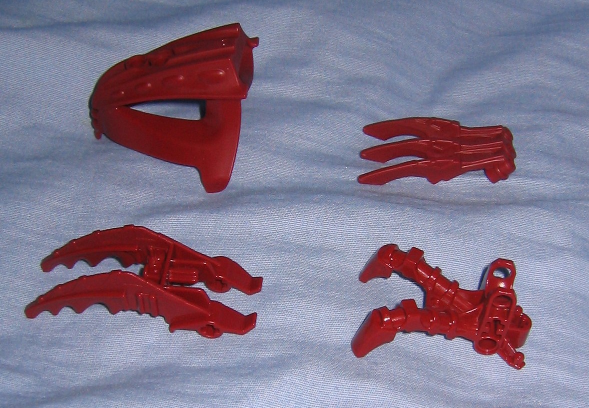 Among the new color variants we get the Fenrahk skull, Takanuva’s (Mistika) three fingered claw/hand and Gorast’s feet in metru red. There’s also the two toed foot with the socket built in, also in metru red. Besides that stuff theres nothing else to my knowledge thats an older part thats been recolored for this model, you might find it’s particular assortment of metru red and other colored parts to be of interest for your MoCing needs, but a good portion of these parts are already available in other sets that you may have amassed already, which might make him obsolete for your MoCing needs.
