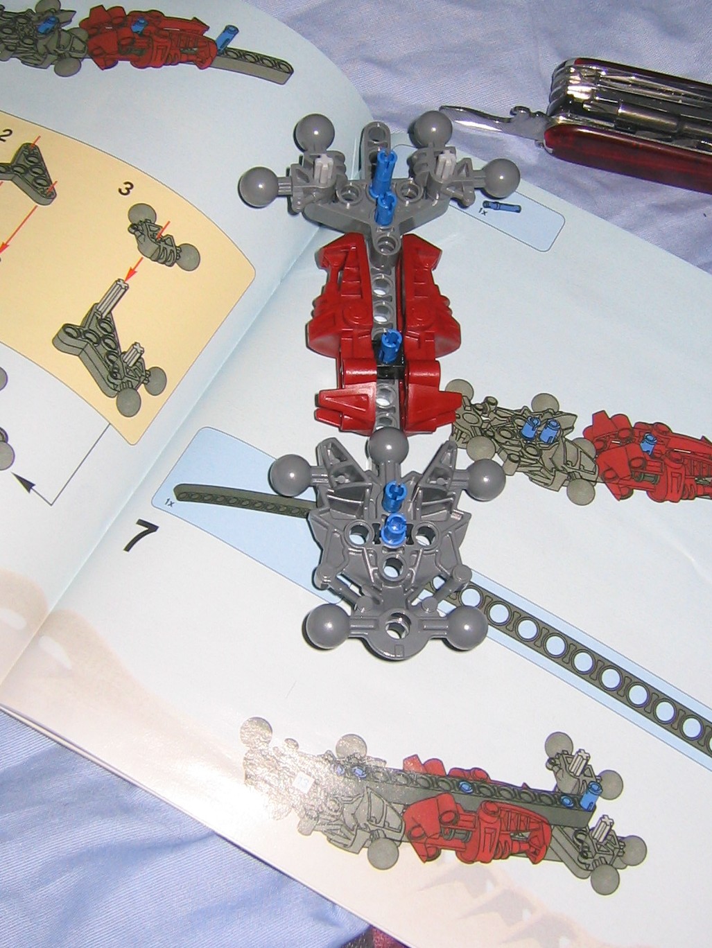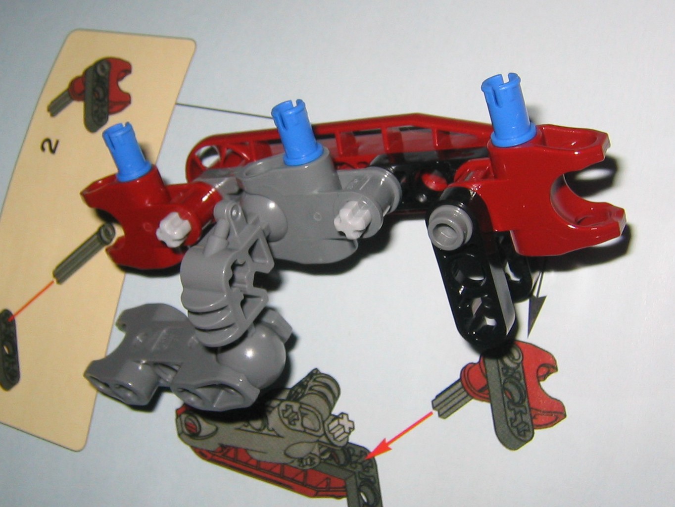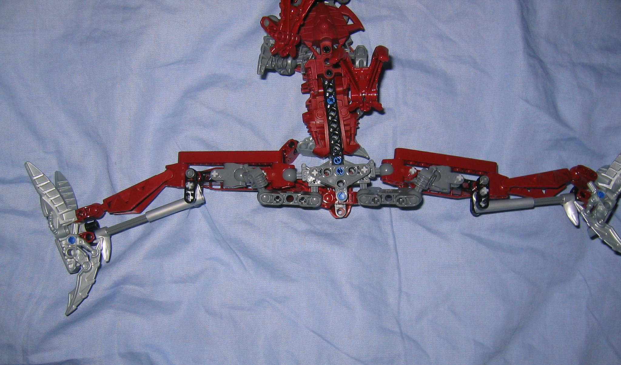 Skirmix seems to be just the right combination of metru red, gray, and silver. It would be nice if they used a silver fenrahk skull to balance the color of the tail and feet into the body, or perhaps even just the two toed feet that make up his hands, but at least the silver looks good where it was placed. Another advantage of a silver fenrahk skull would be that we could use it more easily with custom creations but this limits it to a red colored MoC, but the red skull is necessary for the colorsheme anyway and gives us an alternate color to use when we need it. Putting my interests aside, the gray and red that make up the majority of the model fit together very well, unlike some models where the gray is just this sort of ugly color they threw in to give the model some depth so it doesn’t look like some mass of one particular color. Maybe they could have switched out the silver in the feet and tail for a matching color but at least it seems to fit.