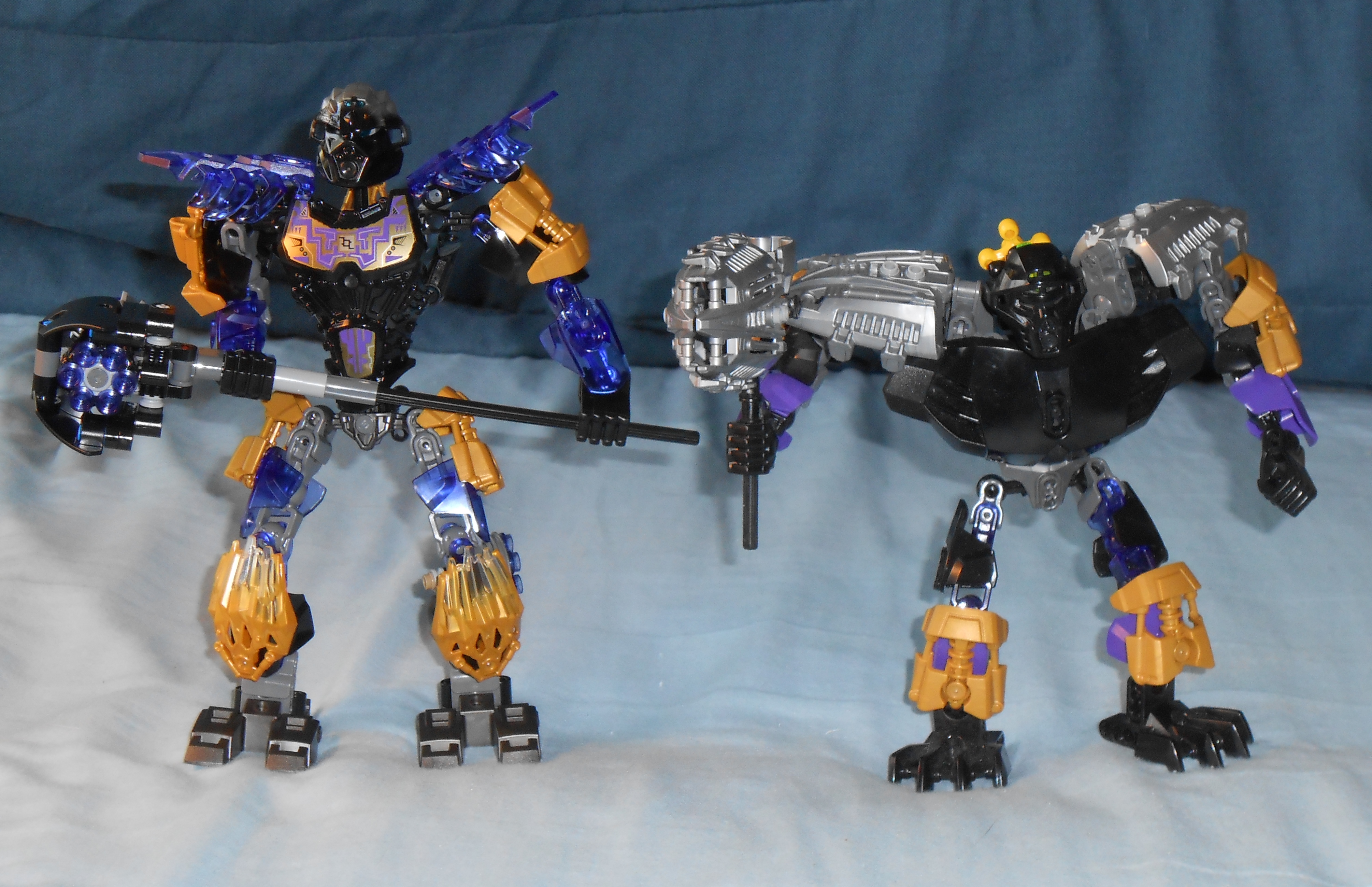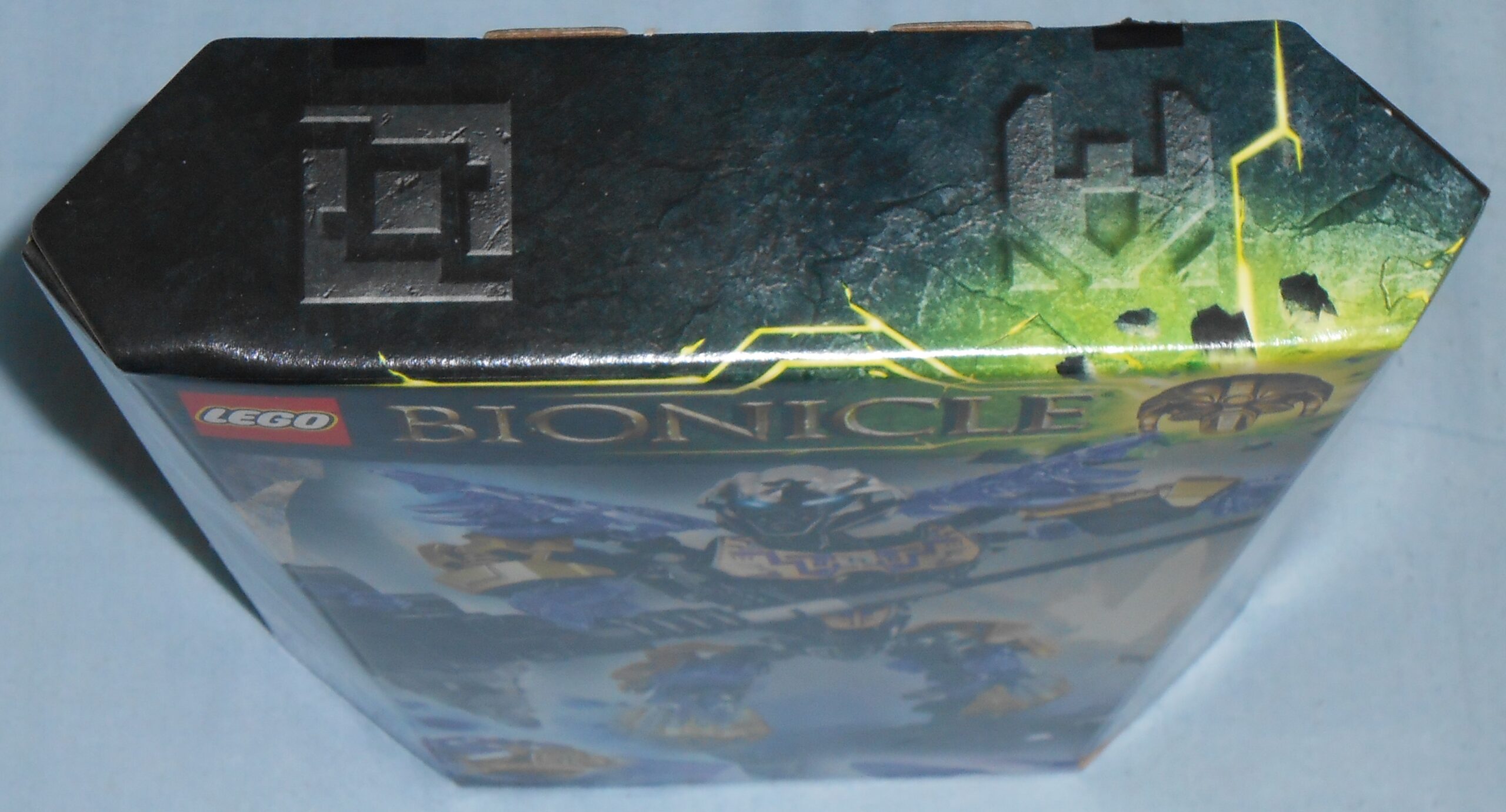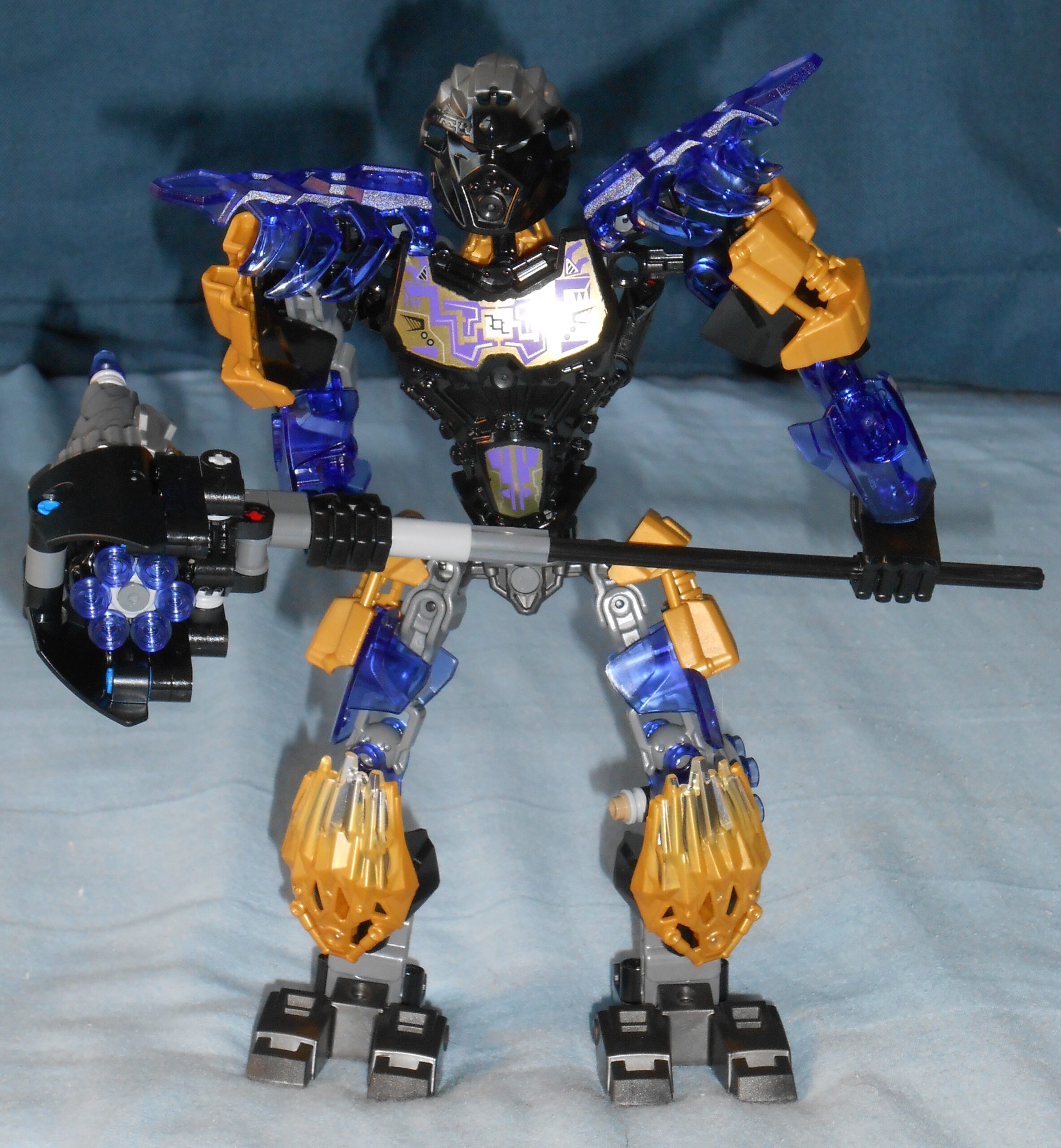 The box provides a bad representation of the Gold mask’s trans-purple. The mask you actually get shares the same shade of purple as the rest of the dark blue’ish purple you see on Onua, but the box represents it as being more of a true purple. The box also hides a construction issue similar to Kopaka’s, which Ill explain in better detail later.
