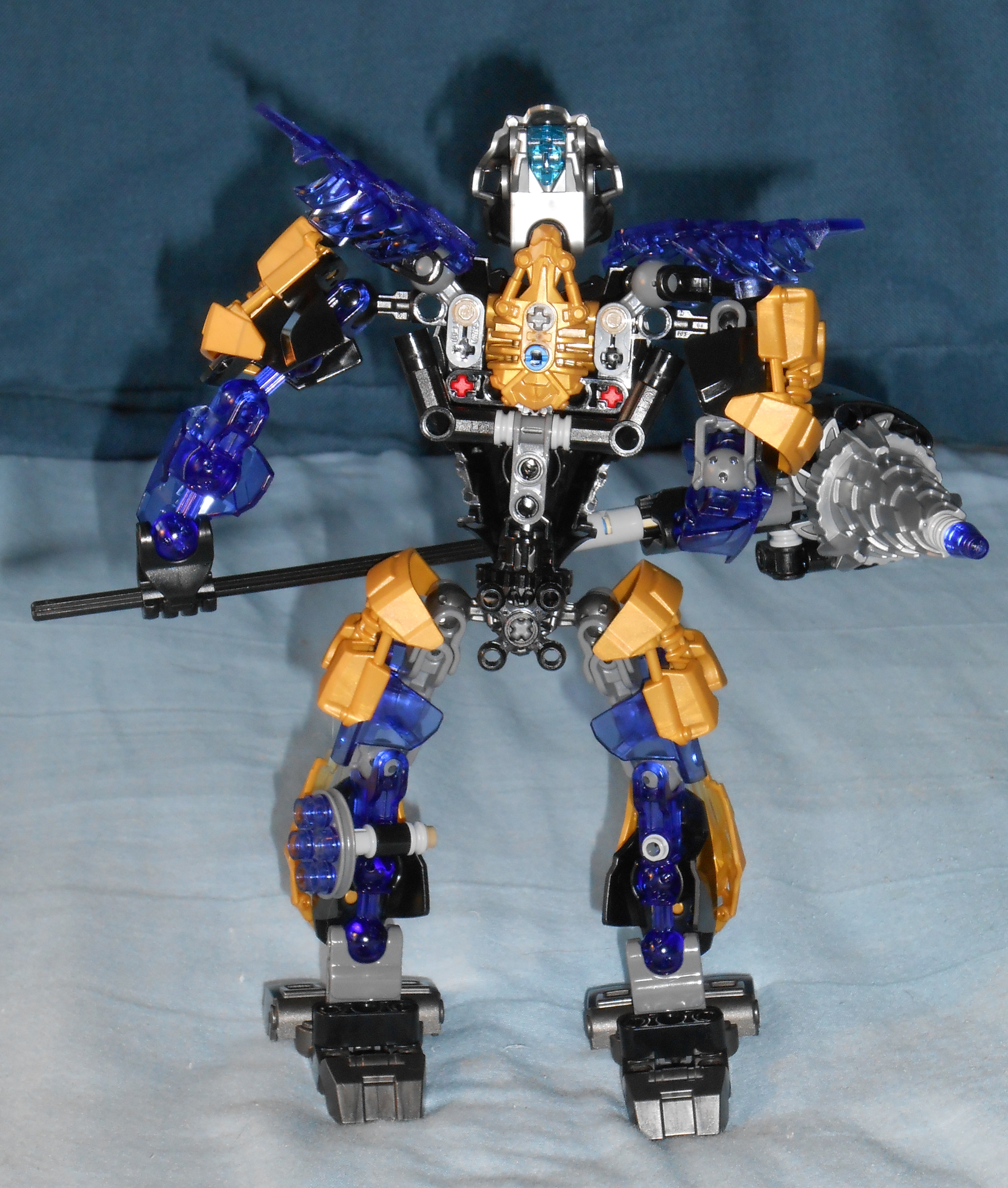 Onua’s Hammer/Drill/Gun pivots on a friction peg, and it’s hard to find a position that doesn’t look good. Being part hammer and drill, its probably going to get knocked out of alignment when attacking an enemy, especially with the longer drill end up front. The drill itself is the knob you turn to fire the studs on the other side, and I keep firing it by accident as a result. I wonder if the swiveling hammer end is just for convenience, or if it’s also there to make a kid less likely to shoot himself in the eye when attacking a target? If you don’t want it to swivel loosely, it looks like a single black peg and a size 3 axel is all you need to fix it in place without much difference in appearance.