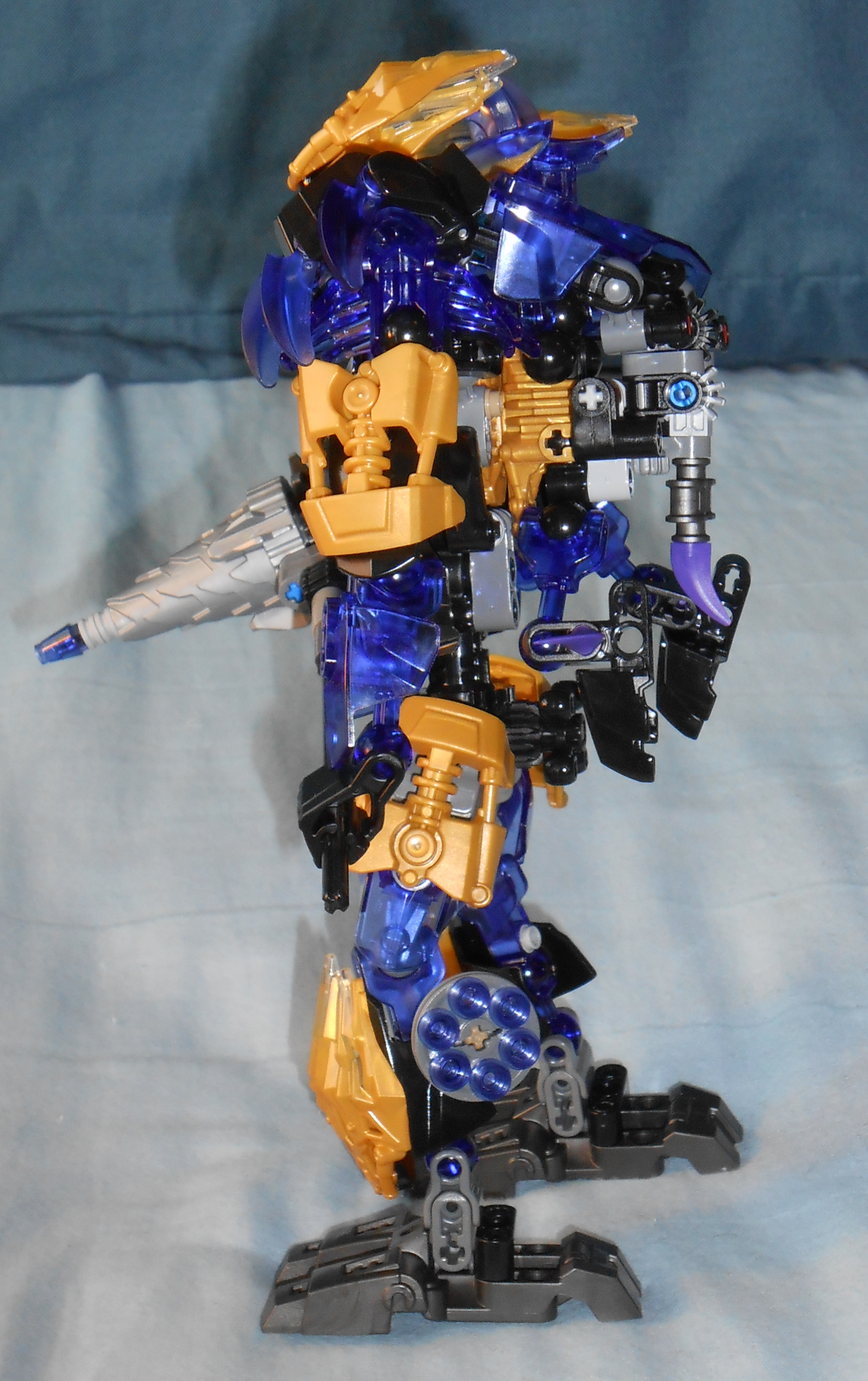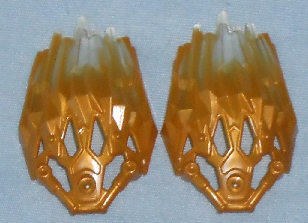 Onua and his respective Creature each come with two of these gold crystal plates. It is mostly gold but with clear plastic at the tip. I find this to be an odd choice since every other Toa and Creature’s crystal plates have a colored tip to match their respective character’s transparent pieces. Gold and purple clearly look good together, but I guess the designers wanted MOCers to have a neutral version to work with, or just plain ran out of budget to make the purple version?