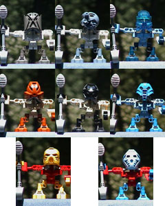 Here they are: KOPEKE, MATORO, HAHLI, HEWKII, HAFU, and MACKU from the individual MATORAN sets (8581 8586) and JALLER and TAKUA from their larger sets (8594 and 8595).