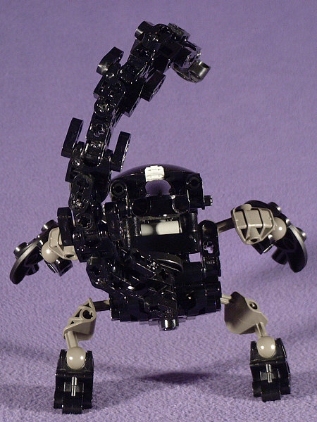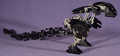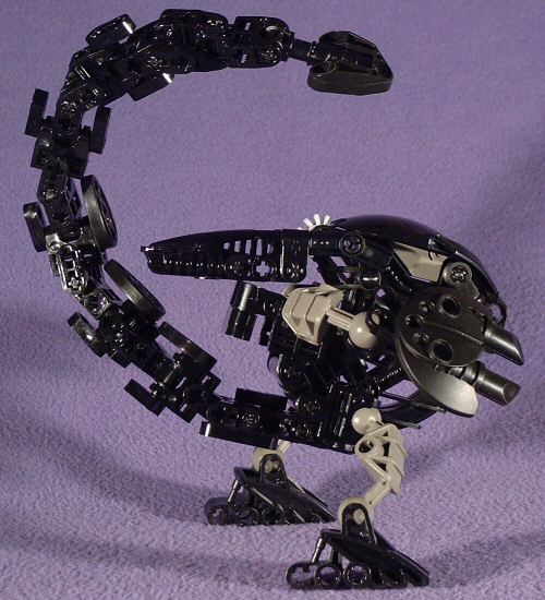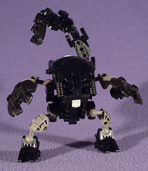 I’m mostly pleased with the result, though there are three light grey parts (the snap-attack gear mechanisms) and five dark grey parts (the brainpan, arms, and legs) that I wish LEGO® made in black. I managed to replace every other non-black part with some sort of black substitute, however, and I got rid of the eyes in the process. Losing the fangs was an unfortunate side-effect, but I don’t mind the loss in light of how much better it looks this way.