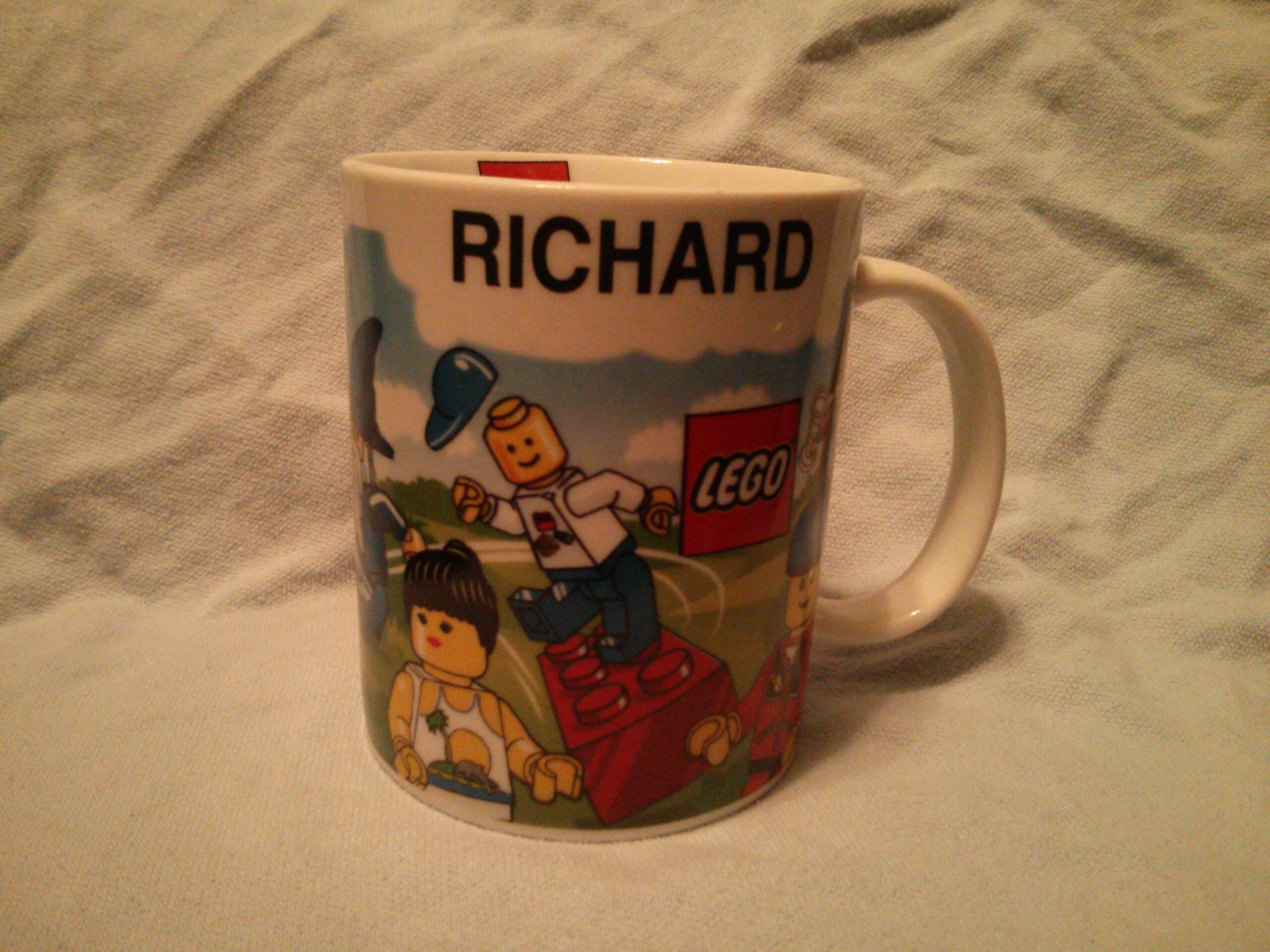 This is another curiosity I’ve been meaning to post. I’ll never understand the logic of a parent that is compelled to buy things for their children with their name on it. Furthermore, Ill never understand the logic of a parent that goes into a famous LEGO® store and buys their son a mug for a souvenir instead of plastic bricks. And I especially don’t understand the logic of a parent who goes back to the same famous LEGO store ten years later and buys their son the exact same mug . .