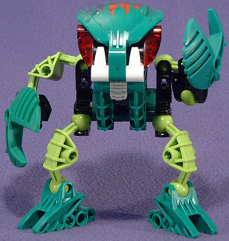 Next we have shots of LEHVAK from the front, left, back, and right. LEHVAK is the only breed where you don’t really notice the rubber band, since it’s the same shade as about 50% of the body. As a BOHROK goes, that’s about the only thing I’m really happy with. The choice of red KRANA and eyes makes him look like he belongs in the month of December, and while the hand-shields are a cool shape, I prefer at least some semblance of symmetry, and the shape of the pincer-shield makes it look like his right hand is palm-down and his left is palm-up. I completely understand that it would be a large waste of money to make two sets of molds for reverse-image shields, but it would have been nice if the shape was split more evenly.