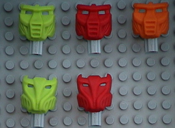 First, a note about the picture above. I do not particularly like the way the KRANA look on the TOA heads. So much of the TOA head sticks out, it is a distraction. What is more, TOA heads are not included in the KRANA packs, so displaying KRANA on them means finding heads elsewhere. I borrowed heads from my KANOHI display for the previously posted picture. In the above picture, I have mounted the KRANA directly on a #1 angle connector attached to a 1 x 1 brick. Unfortunately, the connector will not fit properly if pointed up into the KRANA where it is not visible, so it has to point down instead. Even so, it is a vast improvement (to my eyes, anyway) over the TOA head display. Now, on to the analysis. Unlike the vast majority of KANOHI, which were only available in the 8525 (North America) or 8530 MASK PACKS, all of the KRANA are available outside of the 8569 (North America) and 8559 KRANA PACKS. Half of the KRANA are available in BOHROK sets and the other half are available in BOHROK VA sets. So when is it economically advantageous to purchase a KRANA pack instead of a BOHROK, or vice versa? Keep in mind that I am approaching the problem from the point of view of someone who is only interested in collecting the KRANA. In reality, what comes with the KRANA (a BOHROK, a BOHROK VA, metal KANOHI) probably weighs heavily as to what choice you will make. If you need 20 or more KRANA, your odds are better than 50:50 that you will get at least one of them in a KRANA pack. Remember that there are three unique KRANA in each KRANA pack. If you need eleven to nineteen KRANA, you need two packs to have better than 50:50 odds of finding one of them. If you need just one KRANA, you will need 22 packs just to have a 50:50 chance of finding it. You probably do not want to buy 22 KRANA packs though. Remember that with the BOHROK and BOHROK VA, you can guarantee your KRANA’s color. That gives you a 1-in-8 chance of getting the KRANA you want, compared to the 1-in-32 chance you take with a KRANA pack. You only need six BOHROK or BOHROK VA for a 50:50 shot at a single KRANA. In all likelihood though, you will be able to find the KRANA you want for sale or trade loose from a fellow KRANA collector. Where? eBay, Bricklink (née Brickbay), and BZcommunity’s Buy/Sell/Trade forum are good places to start.