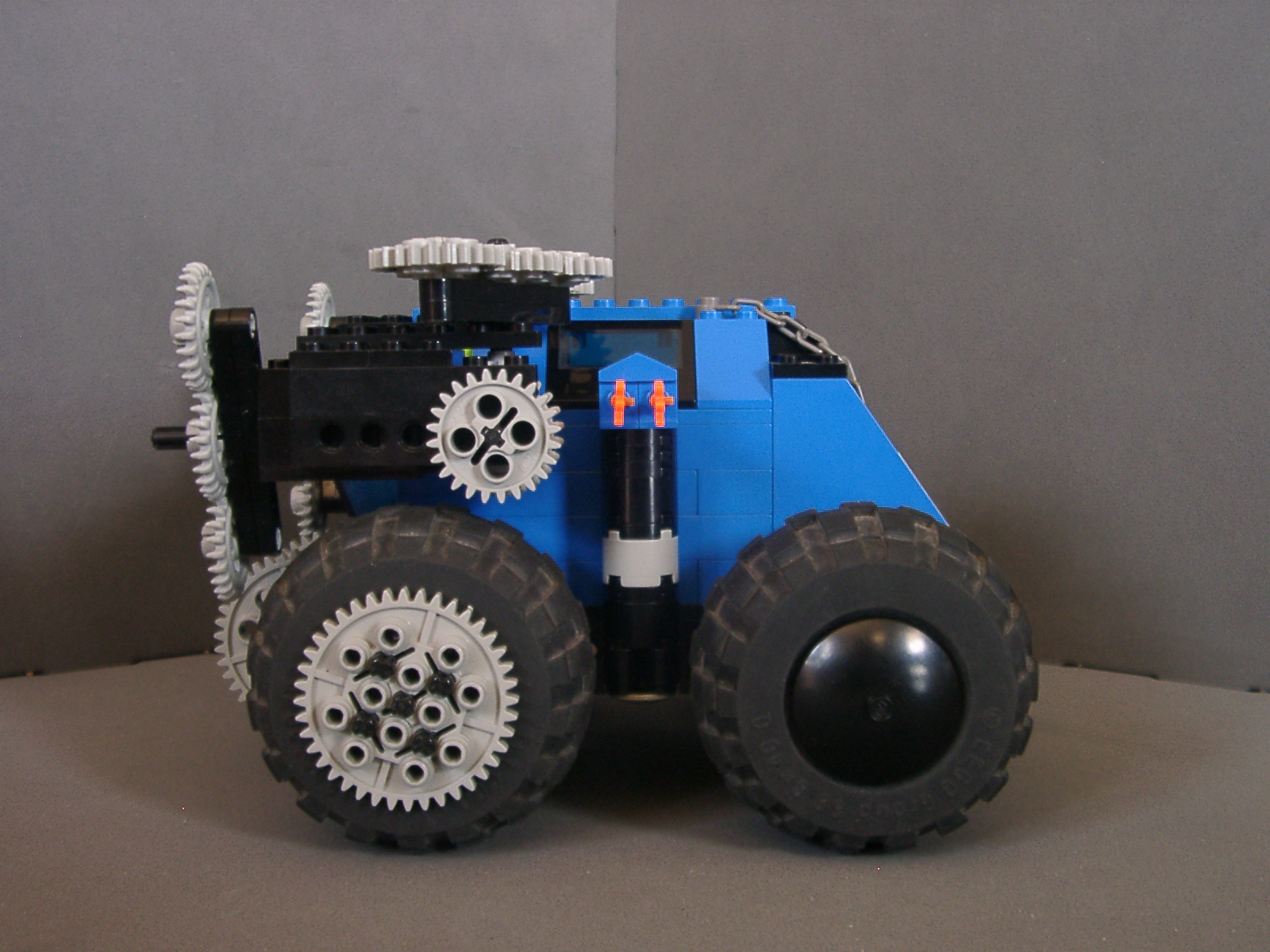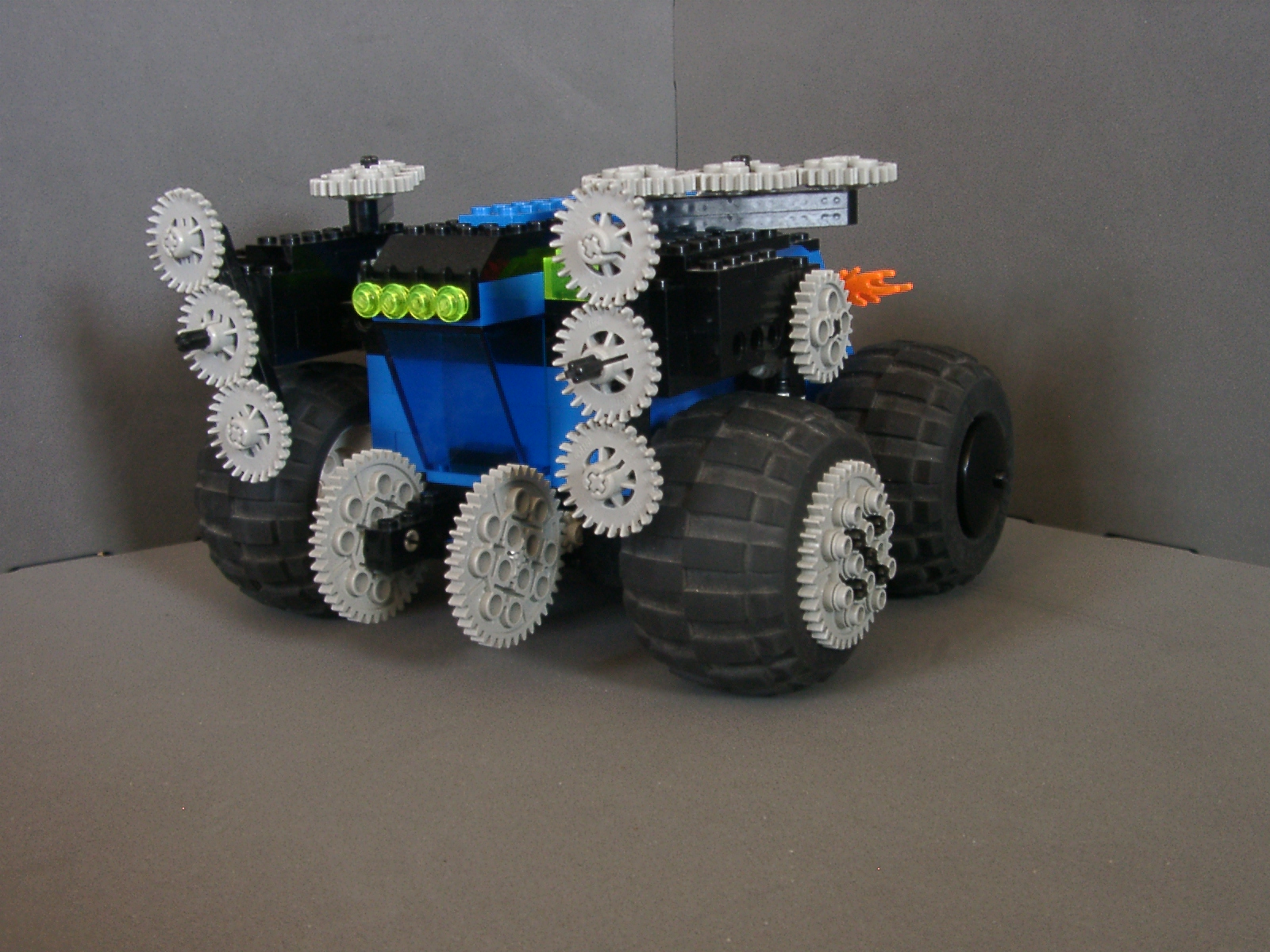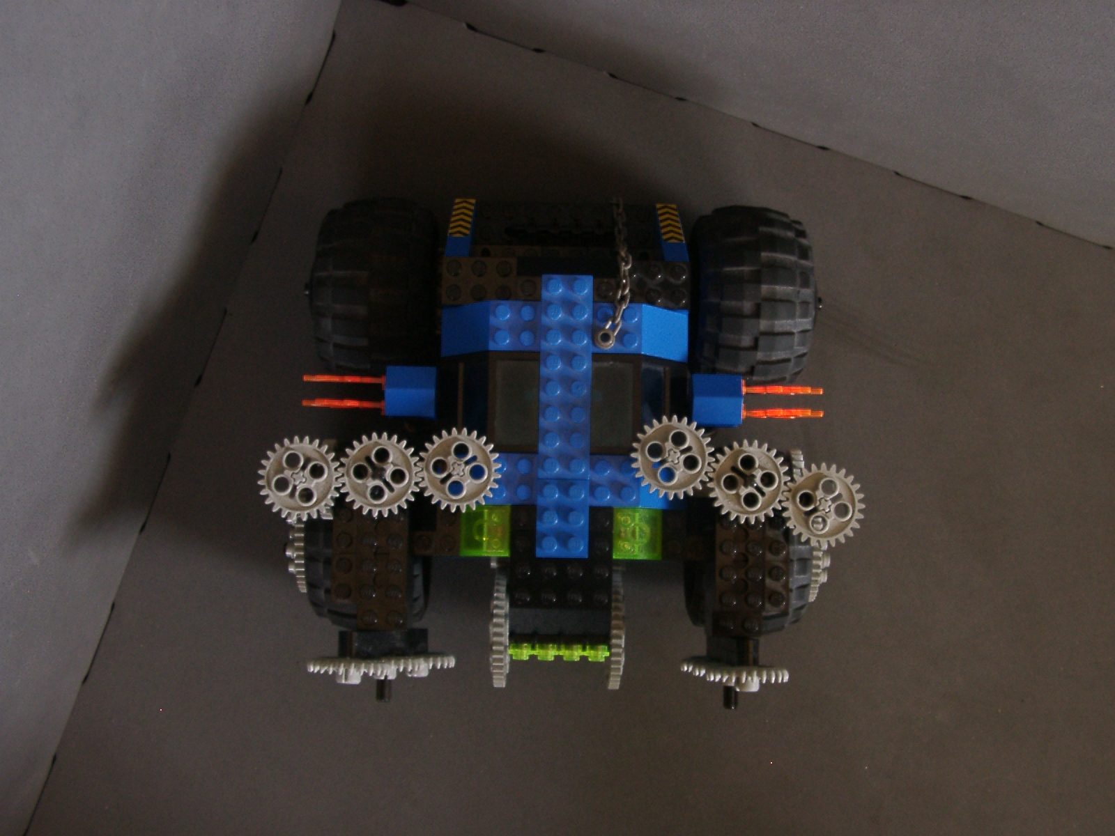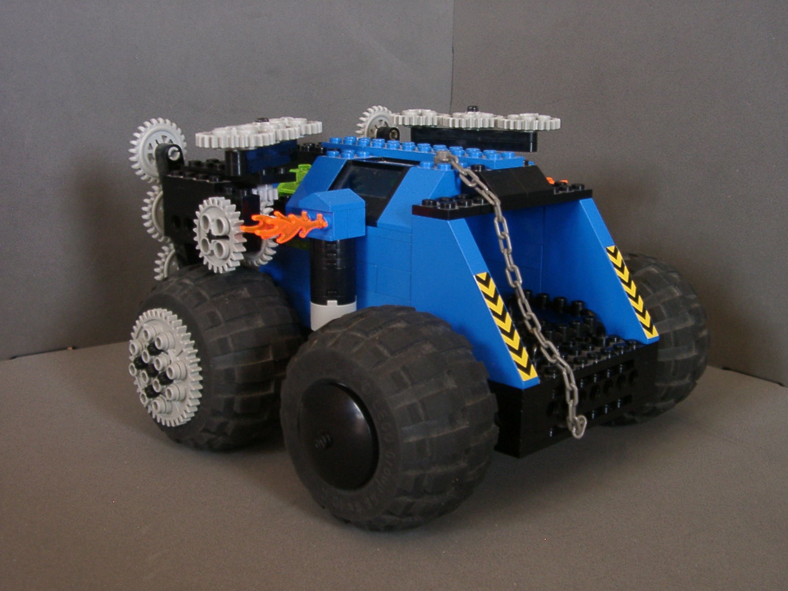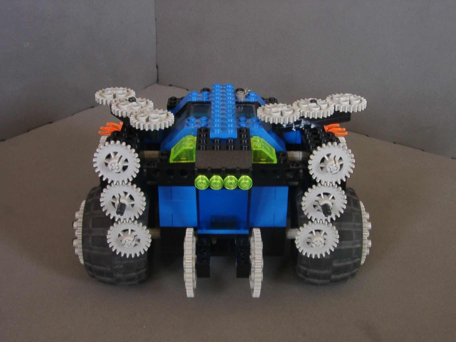 It might take some imagination for you to realize that the visible gears are a working, spinning, drilling mechanism that moves when the vehicle rolls forward or backwards. These machines were used to drill out the lower levels of the Onu Metru Archives. For the full story, videos, and pictures showing how it works, visit the Archives Titan MOC topic on our forums .