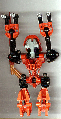 MA-TAHU, submitted by Darzoni, is a combo of the words MAKUTA and TAHU, sort of based on the word BIONICLE™. This MOC is somewhat built like a gorilla. As you can see in the front and back photos, it can stand like a TOA, but the below shot shows that it is also capable of walking on all four limbs. Darzoni used a rather clever mechanism that allows the head to always look straight forward in either position, but tilt back and look up when in a standing position. The fourth picture gives a better idea of what pieces were used to build this MOC.