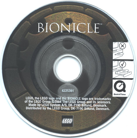 I am starting off BIONICLE® CD-ROM Month with the Mini CD-ROM included with the European TOA VAKAMA set. The first thing to note is that this disc is a Great Disk. Yes, the pattern imprinted upon it is the Great Disk of Ta-Metru. It does not have the code, but it does have all nine pips (some are obscured by the pictorial instructions).