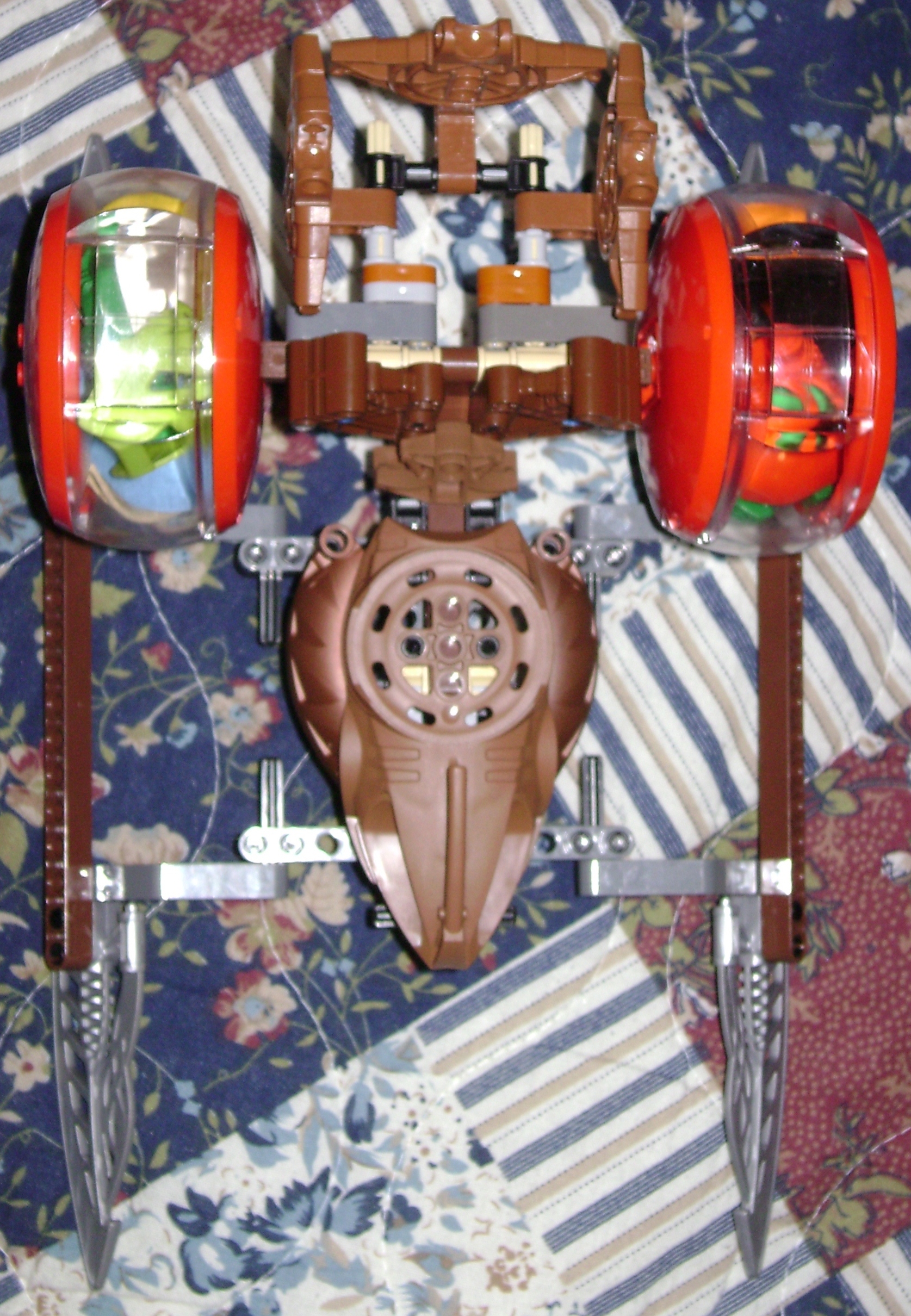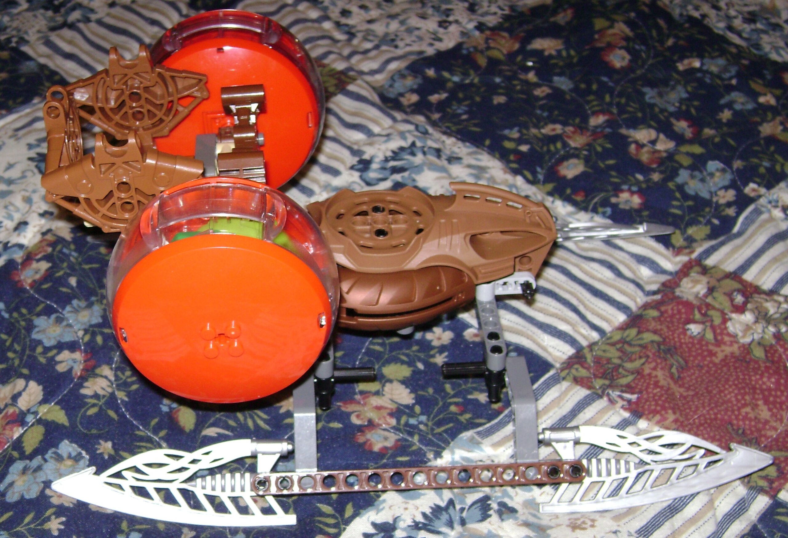 This is the sleigh, which I spent most of today working on. I had originally wanted to craft it out of a Toa Mahri frame (the big hard plastic thing taped around the blisters the Toa Mahri came in). I had forgotten they switched brown to yellow, so I spend some time working on this smaller alternative. It’s not as flashy as I wanted but I think it’s simplicity has its own appeal.