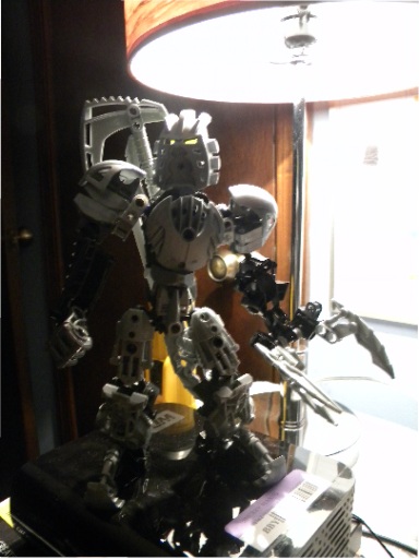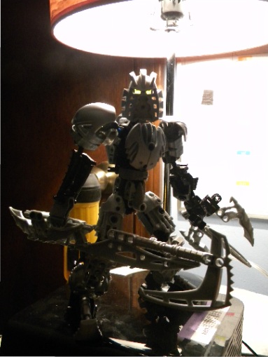 In order to make this MOC, I had to look up inspiration online. Personally I SUCK with BIONICLE and I cannot make anything worth a large pile of kratta without having some sort of imagery or inspiration. I found a body type I enjoyed thanks to this guy Click Here to See on Brickshelf.com. Then I added my own personal touches, which include the mask, arm style, claw, and weapon. I’ll have more pictures over time, possible.