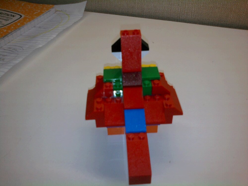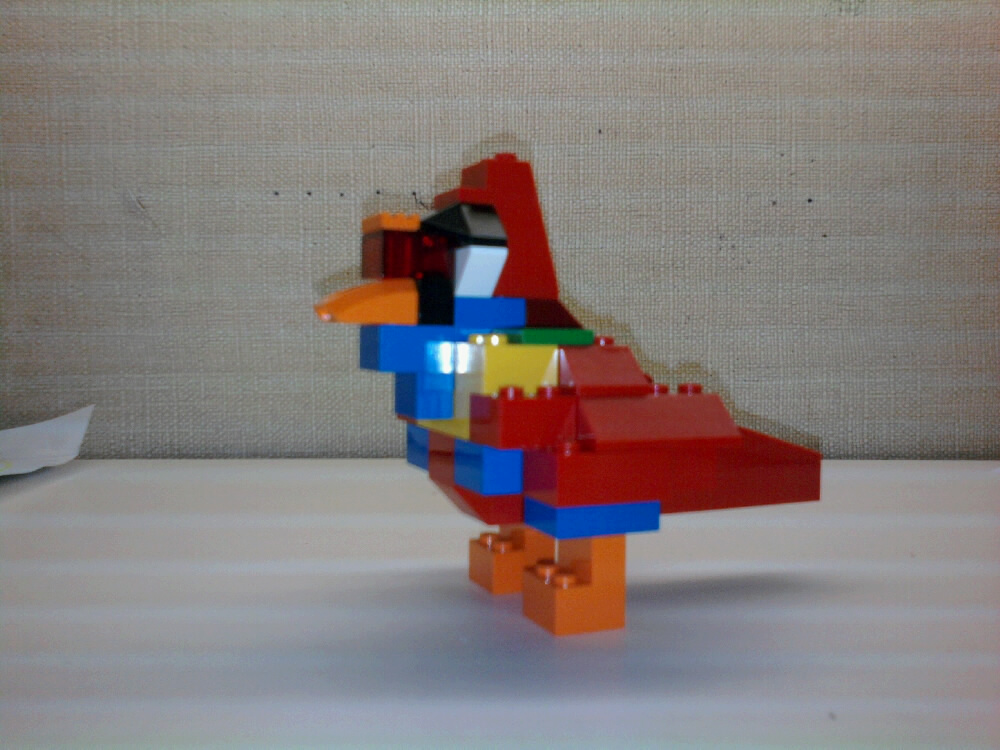 In case your wondering, the transparent red peice just above the beak represents the eyes (I think), and is probably the only thing that sets it apart as being “Bionic”. Mataro describes it as a BIONICLE/Rahi version of a macaw bird.