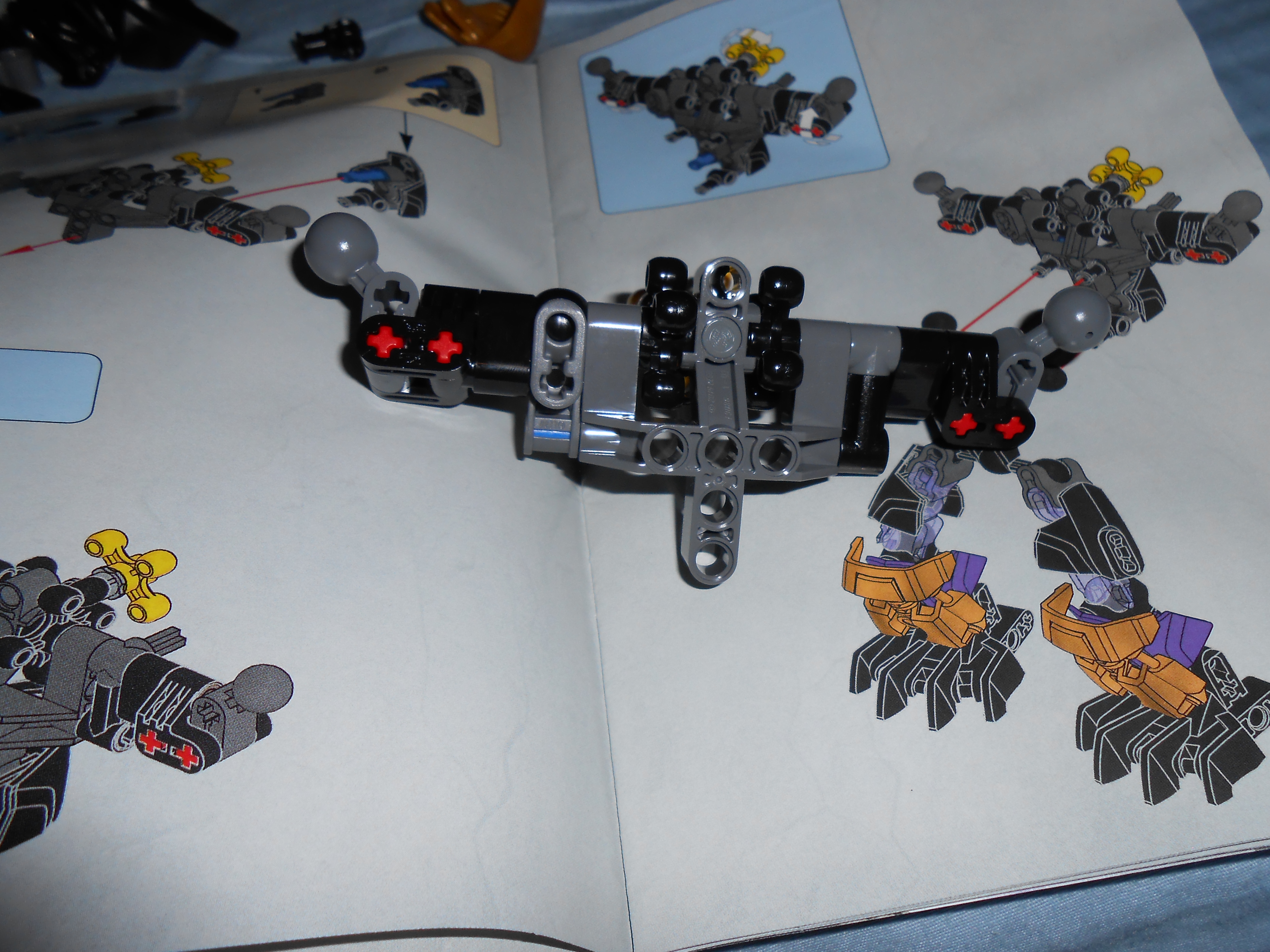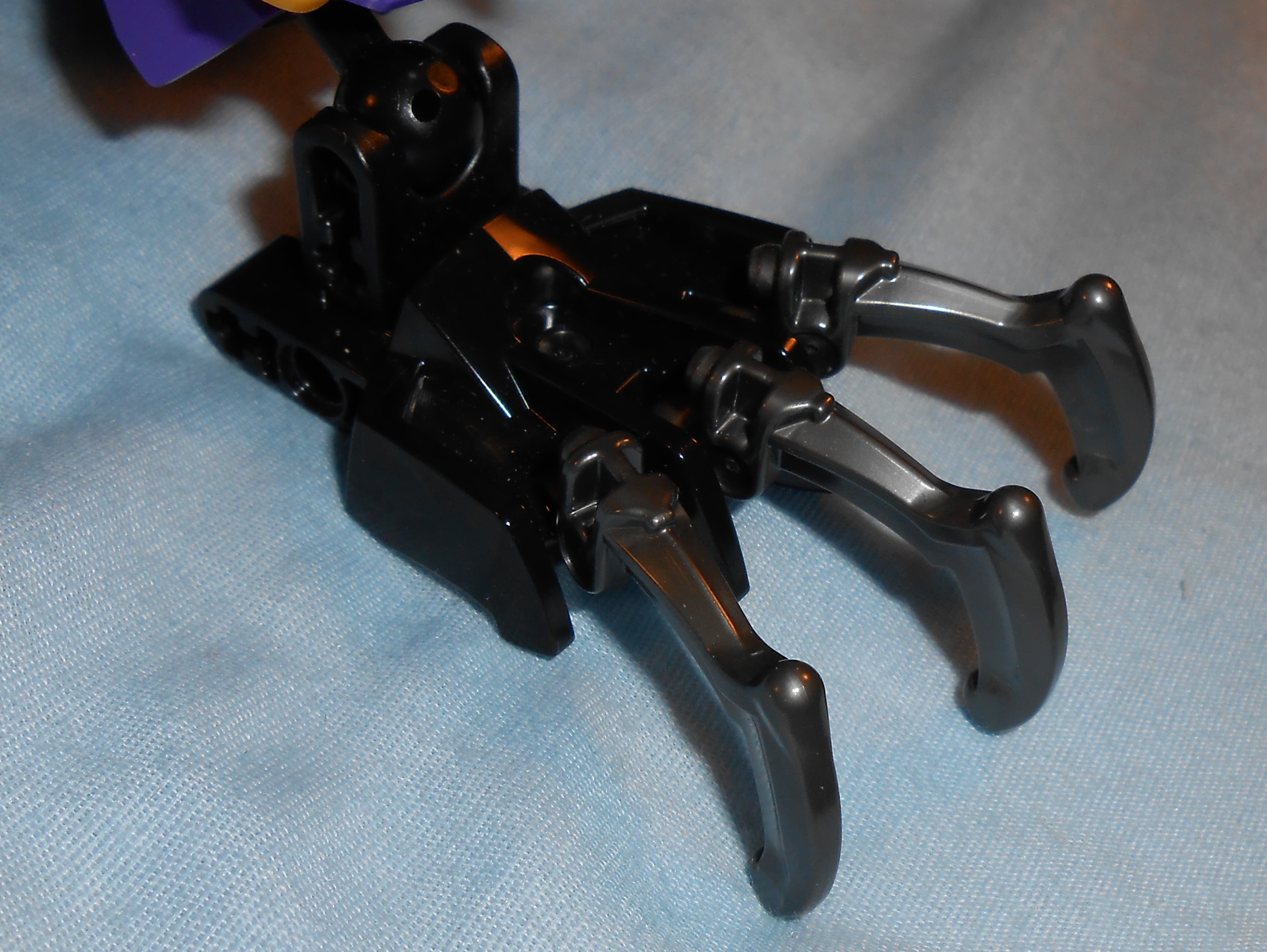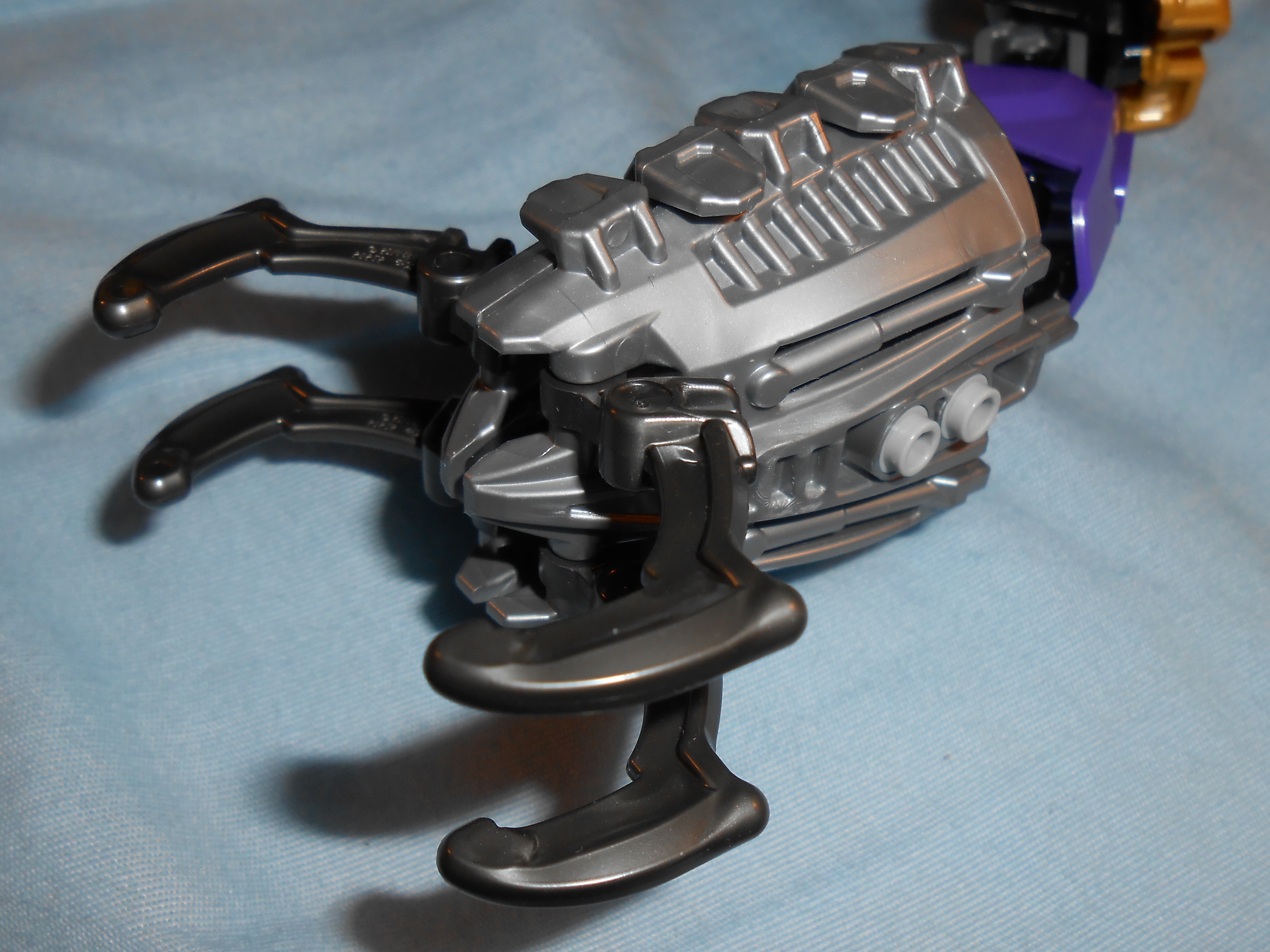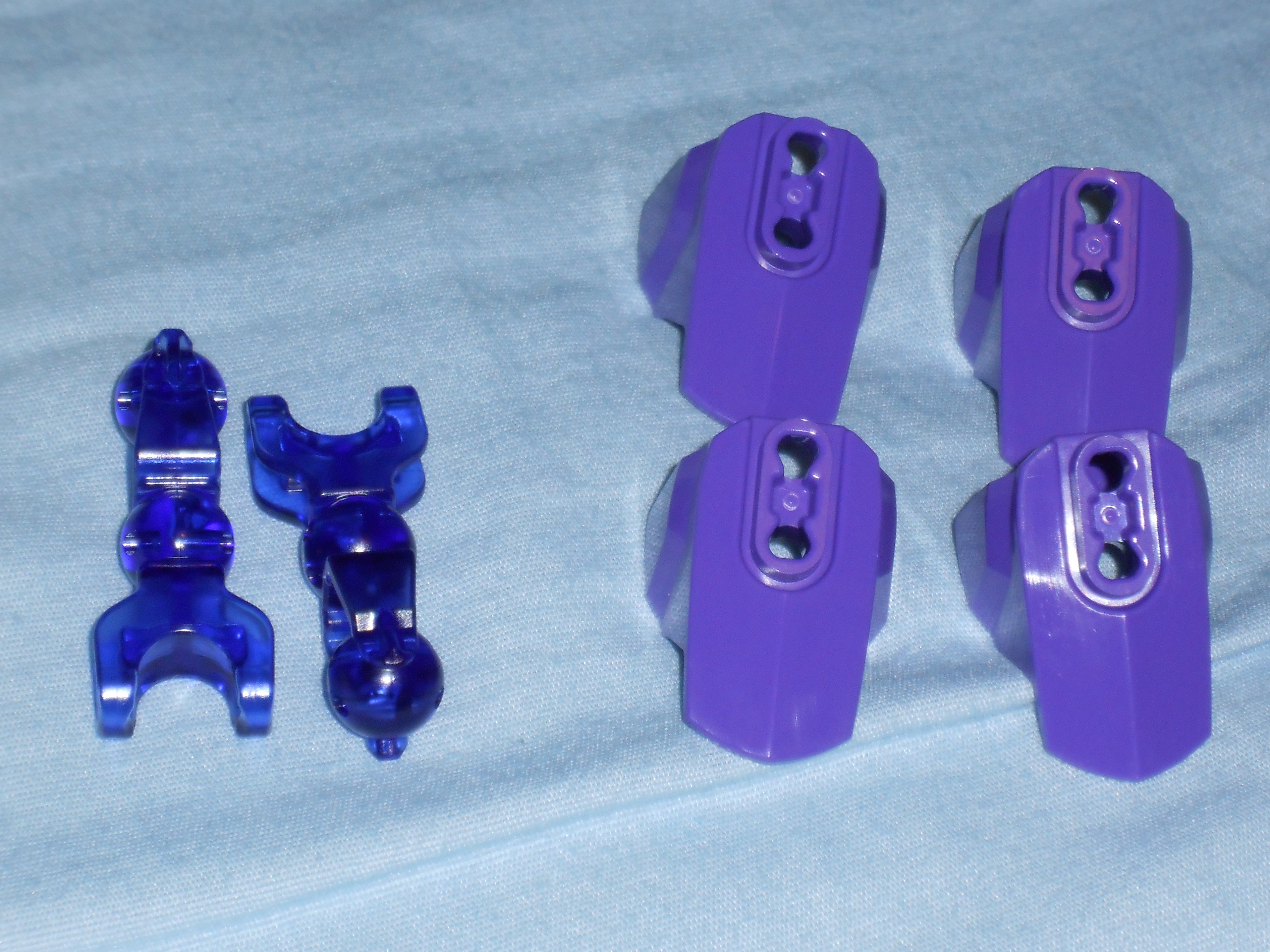 These are the purple parts, seems like the LEGO Company is stingy on using them, but I’m glad to see they are responding to earlier suggestions to include the colors in my favorite theme. I’m not the best photographer so the colors don’t look quite right. The purple armor plates take on a shade of lavender when photographed with my camera, and the transparent purple’ish dark blue pieces appear just to be plain transparent blue.