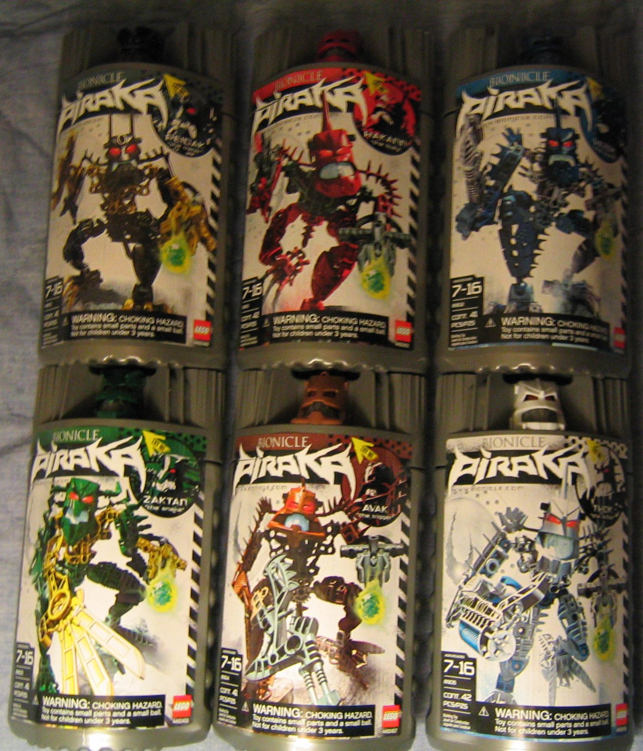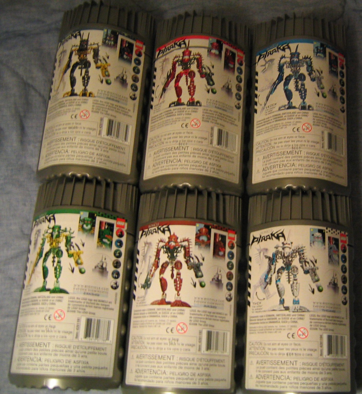 As with most BIONICLE toys, there’s stuff I like about them and stuff I dislike, but overall the sets themselves have a good level of playability. They make convincing villains, and LEGO seems to be doing a good job with the bad attitude they are trying to imply with the commercials and ads. A PIRAKA’s back is his bad side, being able to see the simple construction. I would have preferred another something or other to fill up the empty back and then have the spine attached. To get rid of that hallow look. I do admit they leave me disappointed, I was expecting something far better, like how when we first saw the TOA METRU they had knees and elbows and everything. The PIRAKA are very articulated yes, but what would have made the PIRAKA perfect to me would have been a better torso design, at least with hip articulation instead of being a solid piece like the HORDIKA, or perhaps even more uniqueness in the models, instead of basic clones with some different stuff. None the less they are a good addition the BIONICLE toy line. I recommend getting one at first to see if you like him, if not the parts will be great for a MoC!