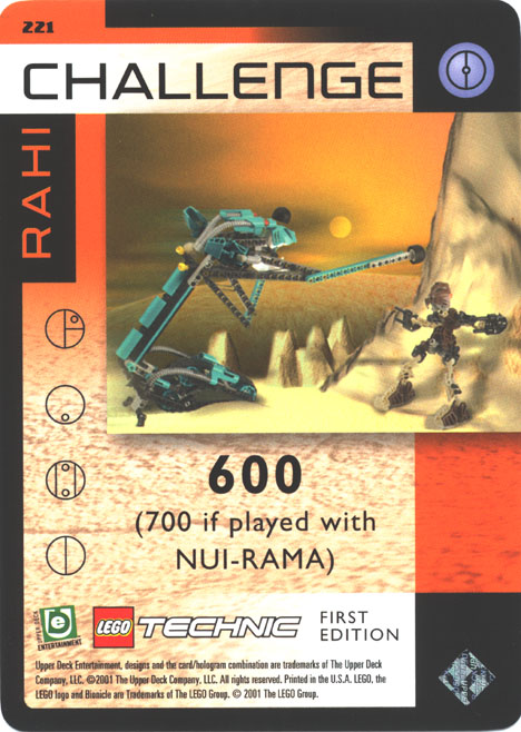 RAHI Challenge cards extend and expand the Quest for the Masks card game. They each feature a NUI-RAMA on the back of the card, as shown above.