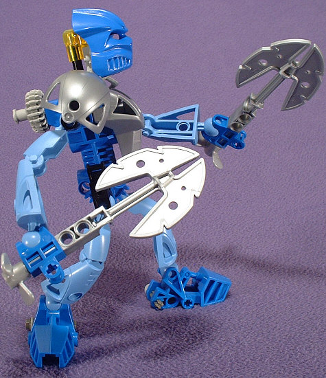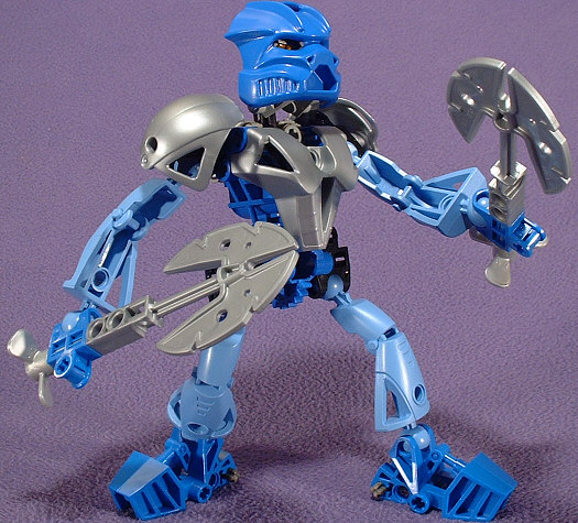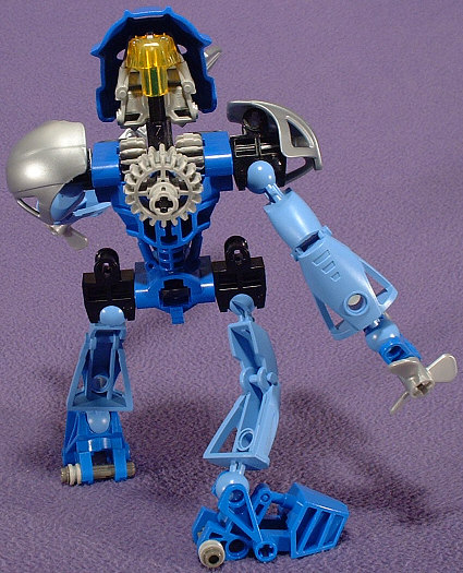 GALI NUVA’s big trick is that she basically turns into a submarine. She can breathe underwater, thanks to the power of the KAUKAU NUVA, she’s got propellers to push her through the water, and she can attach the Aqua Axes to her feet to use as steering fins. Of course, she probably needs a bit of assistence if she’s going to insist on swimming while wearing all of that heavy armor…