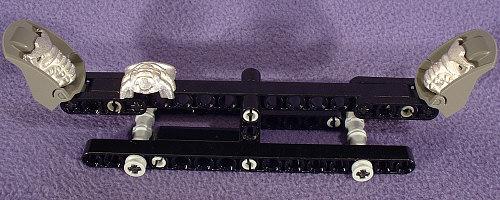 The other most noticable difference is the color. The WMKK looks dull and greyish, while the SSKK looks brightly polished and has a warmer color tone. Once you look beyond the color, you also notice a number of physical differences. The WMKK, for safety purposes, had to have its upper tips blunted after it was produced, and the result is ugly mushroomed caps that look like they’ve been damaged, and can scuff a TOA’S head if attached to them. The SSKK, on the other hand, has nicely rounded tips that required no post-production alterations. The WMKK also has a large blemish on the underside of the chin, which was likely caused by the same process that resulted in the blunted tips, as it’s not present on the SSKK. Running down the sides of the WMKK are mold seams that are also absent fromt he SSKK. However, the most telling difference of all is the fact that the SSKK has “STERLING” stamped in tiny letters immediately above the MASK CODE on the back. Eventually, I suppose, the SSKK will also develop a layer of black tarnish, but only time will tell.