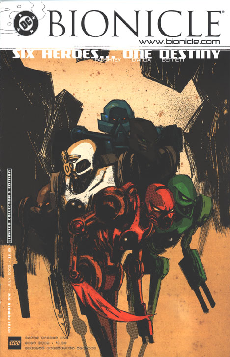 This is a scan of the “Limited Collector’s Edition” of BIONICLE® Issue Number One that was given out during Comic Con. The cover illustration is by Ashley Wood.