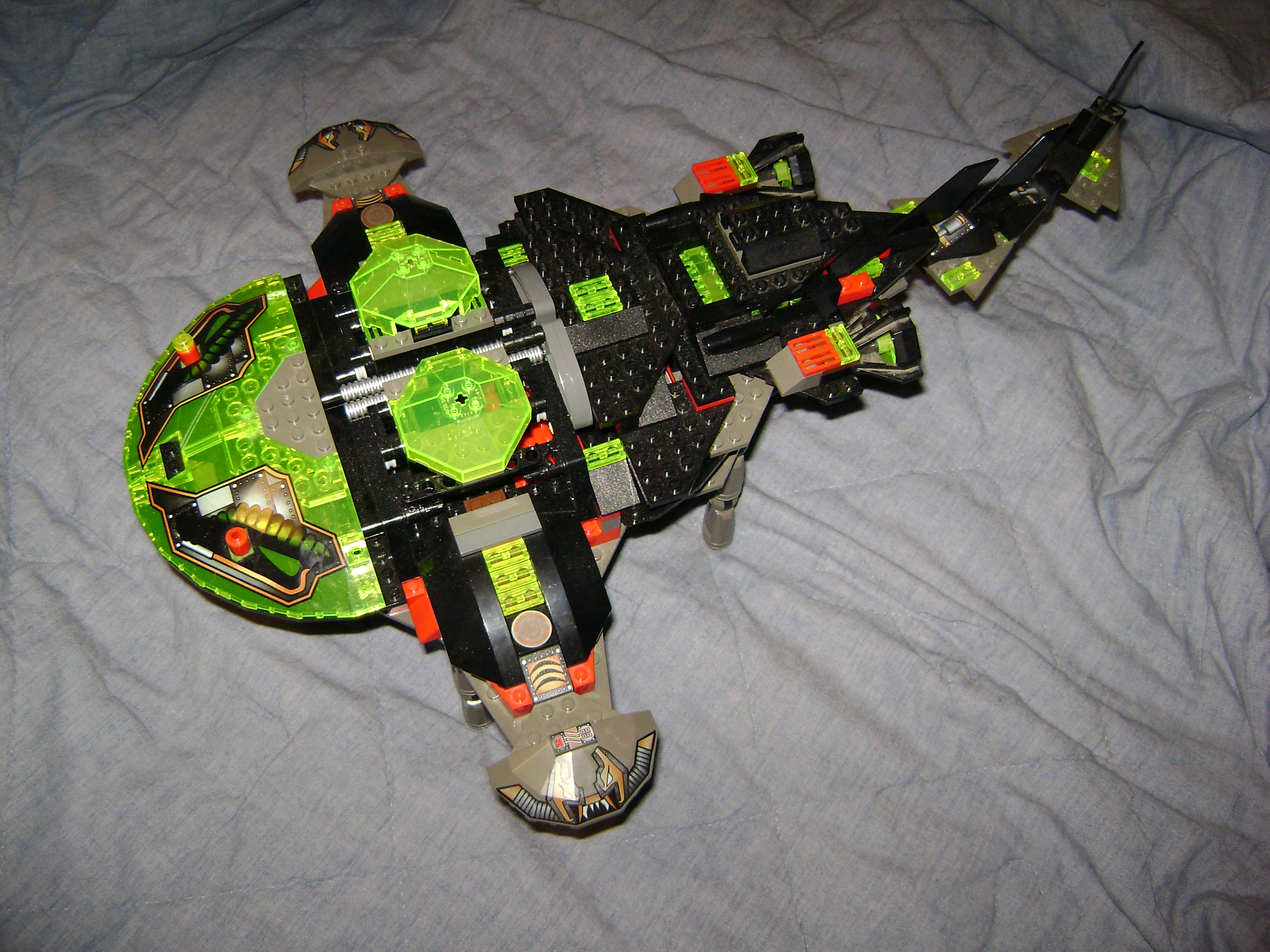 This is one on my unfinished MoCs that evolved over time, loosely based from the parts and design of the set #6198 Sting Ray Stormer. Features multiple doors, landing gear, underside access door with sliding lock, small rear compartment, and two detachable side ships. Maybe once Im done Ill give it a name. Feedback topic UPDATE : Thumbnails fixed, but my 7.2 megapixel camera takes some big pictures, you may be better off using the URLs in the feedback topic to fit them into your browser while I try to tinker with them.
