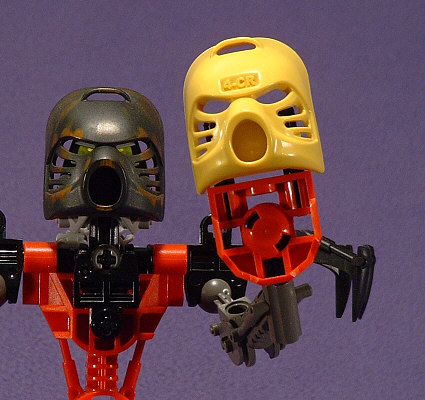 I’ve seen a few prototype KANOHI being auctioned on eBay, but not like this. The HAU was red, the PAKARI black, and each of the others were in the same colors that were used for the KANOHI that came with the actual TOA sets. While this may not be the only yellow HAU out there (Not with JALA all over the place…), it’s certainly the only yellow prototype HAU that I’ve ever heard of.