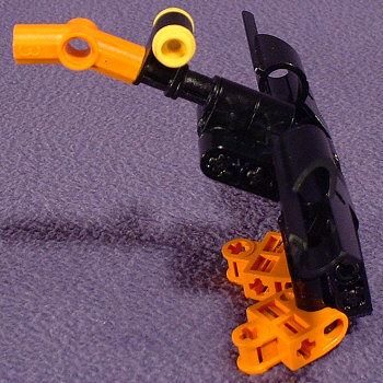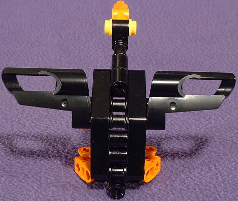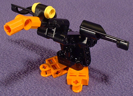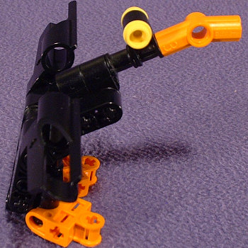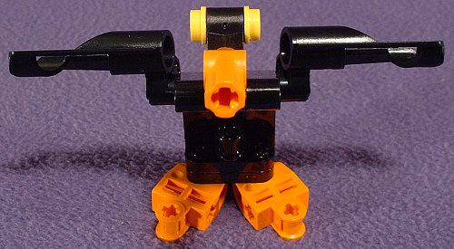 I wasn’t trying for a duck. Really. It just sorta happened. I just wanted to get rid of the grey/orange color scheme, and the only other pieces I had available for the sides of the torso were black. And I had a few other pieces in black. And pretty soon I realized I had just squeezed Daffy into the BIONICLE™ universe. Still, it looks kinda cute.