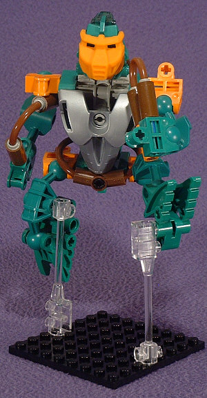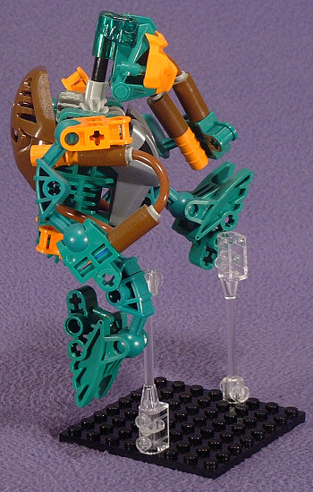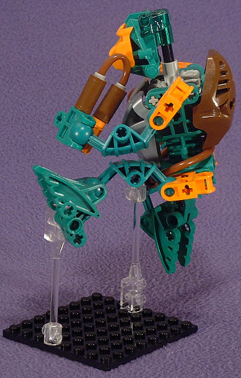 When posing him, I opted for a flying kick. Yeah, he looks a little goofy because of the short stubby legs (hey, if they made basic green TOA legs…), but I’d already done one kicking and one jumping, so I figured it only made sense to have one doing both.