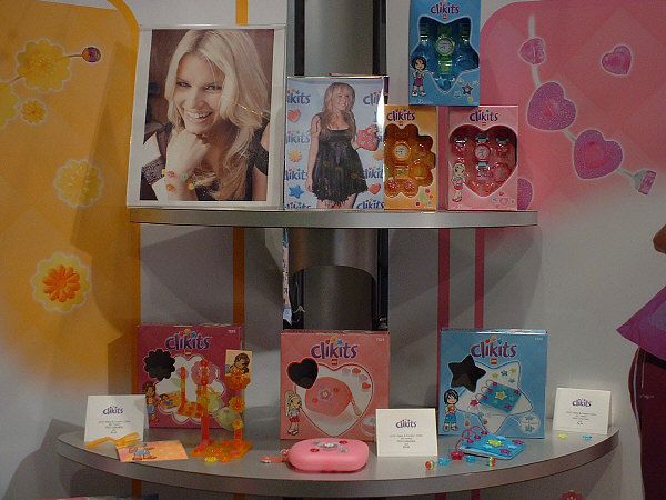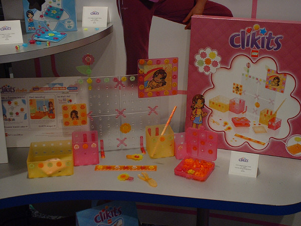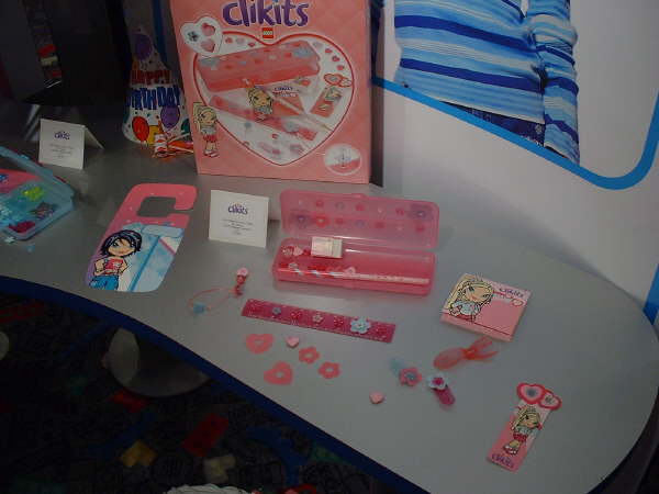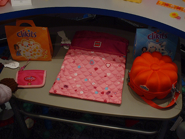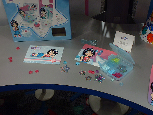 The CLIKITS™ line has proven to be extremely popular…among girls, at least, and especially in Germany. In the above picture you can see the small bags (top row l-r: Starry Bangle & Rings, Friendship Frame or Mirror, & Flowered Hair Bands) and medium bags (bottom row l-r: Sweat Dreamy Jewels, Striped Sunny Jewels, & Cool Starry Jewels), all of which are packed much like last year’s initial release sets.