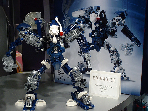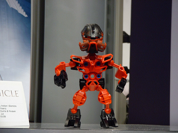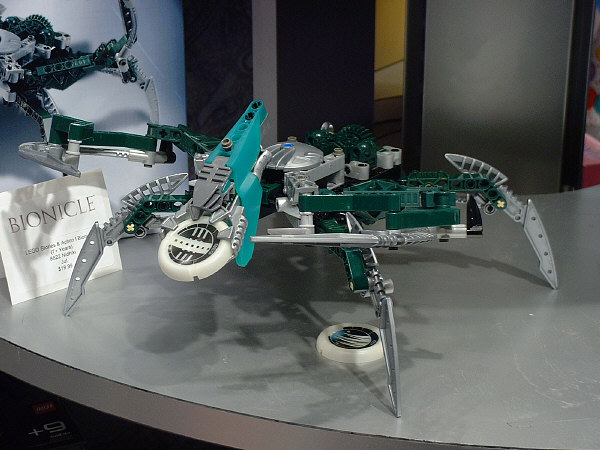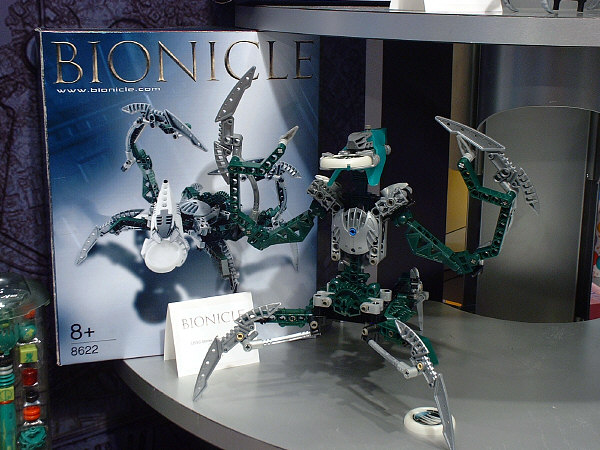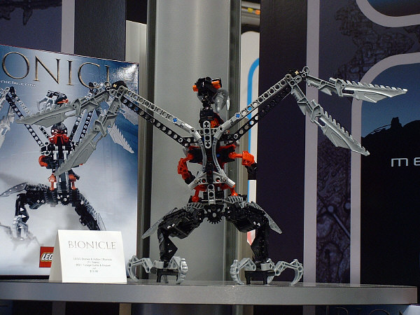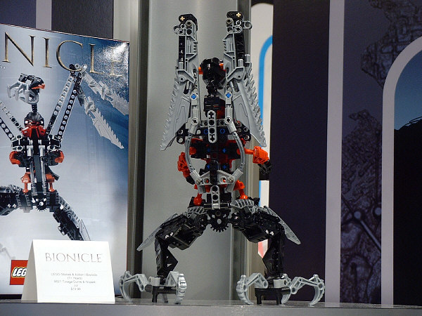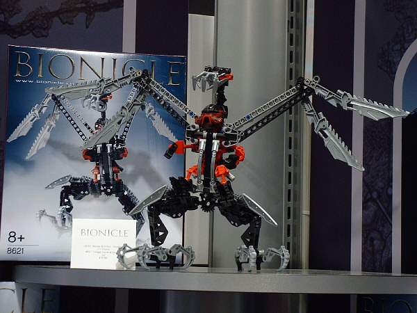 NIDHIKI is the big bad-guy set of the year. Featuring a VAHKI head, and claws that actually open and close, he’s more than a match for a TOA METRU. In addition to his weapons, he’s got some shapeshifting ability. The torso can be rotated down and the head flipped over to make him look more like a scuttling crab, and, while I’m not sure this was ever intended, the legs can be folded up into a shape that looks vaguely like skis. I fully expect this set will come with at least one new KANOKA.