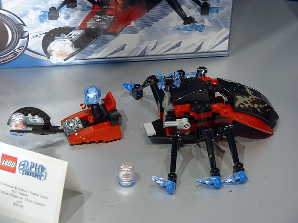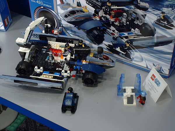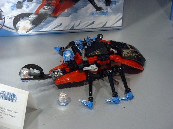 The Mobile Command Center opens up to reveal a crane that can be used to hoist the message bricks into a mobile lab environment where they can be checked. Additionally, it has a working gun mounted above the cockpit, and two self-launching snow-skids that tuck in right between the cockpit and the main bay.