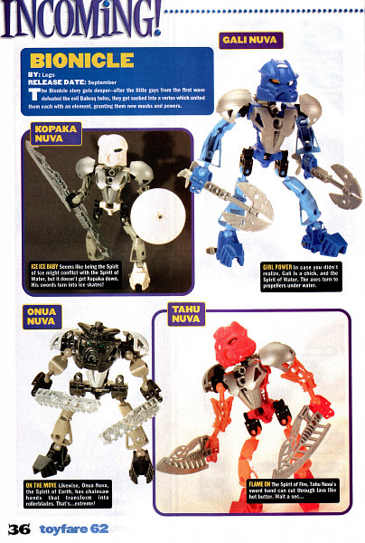 In the five years that I’ve been reading ToyFare , I can recall only four issues that covered LEGO® product. Three of them, including this one, covered BIONICLE™ product. If you are ever concerned about the future of BIONICLE™, just stop to consider the fact that it’s doing well enough to keep drawing back the attention of the most popular magazine in the mainstream action figure collecting community. When you consider the type of stuff they typically cover, this is pretty significant.