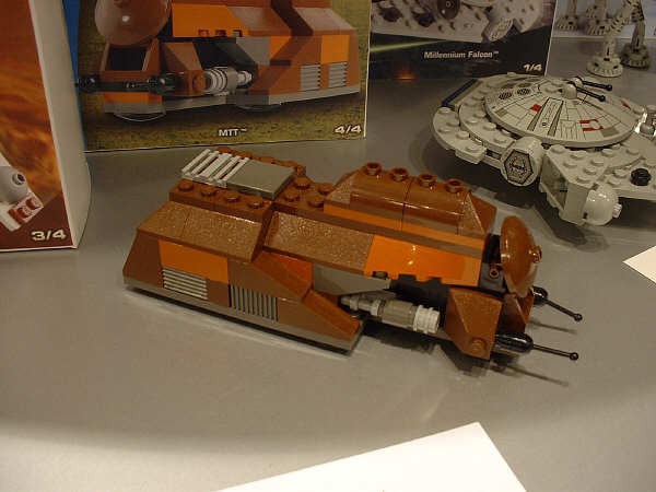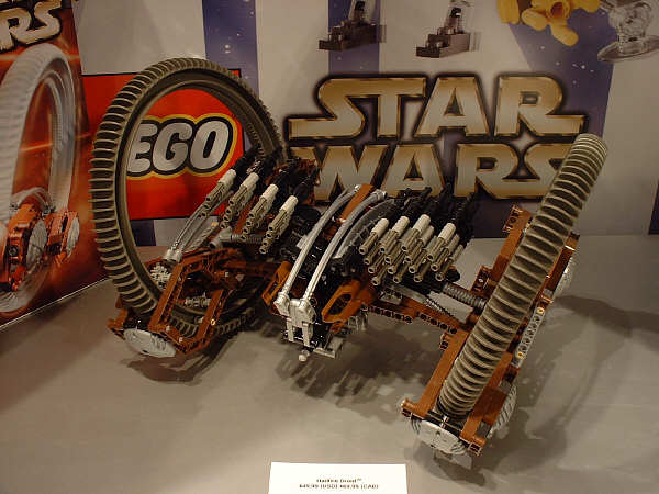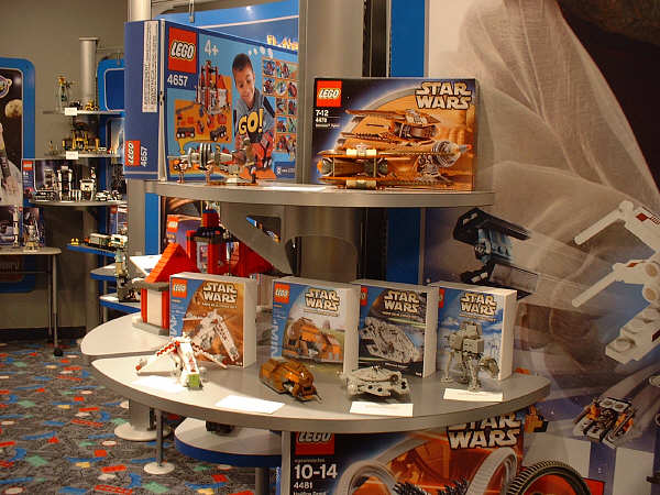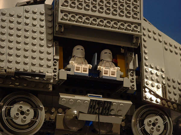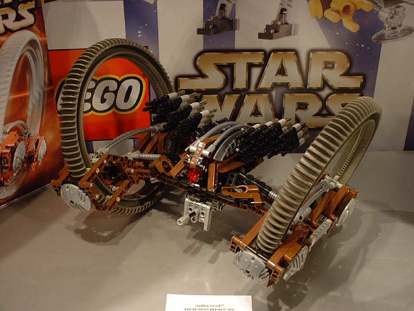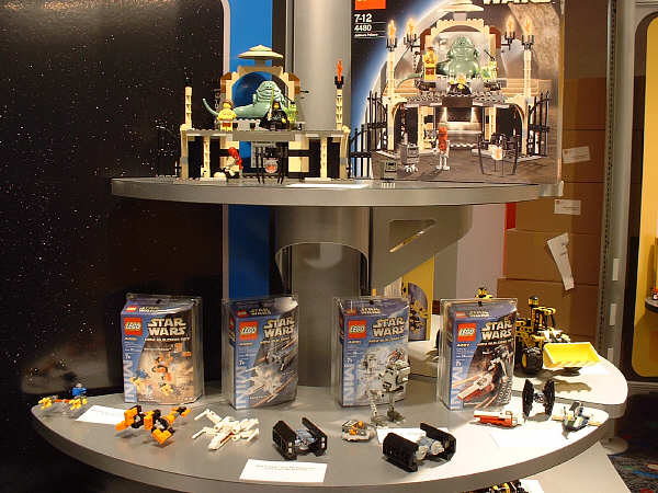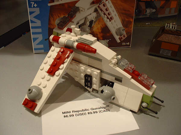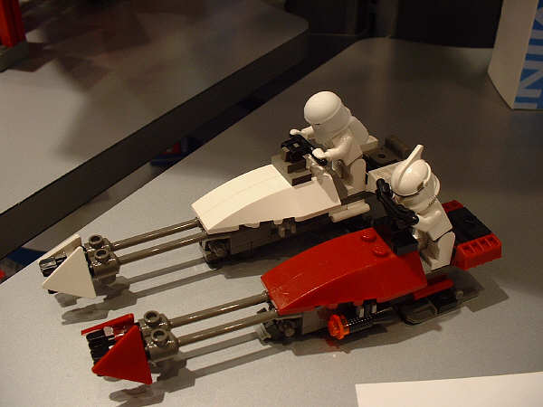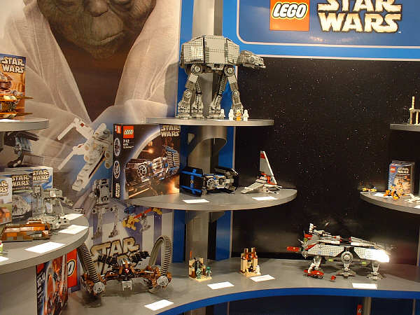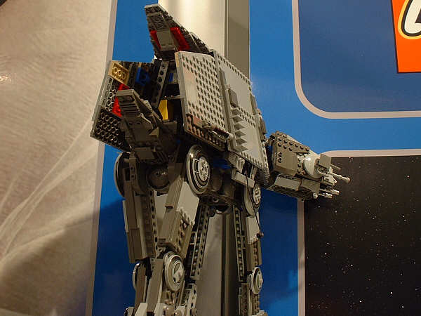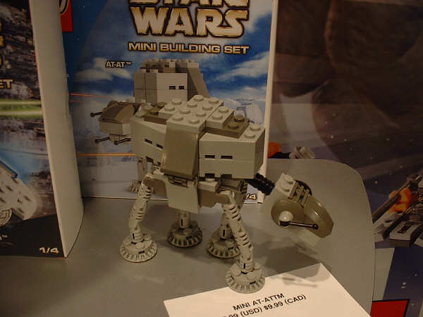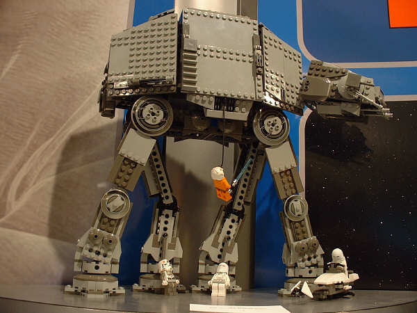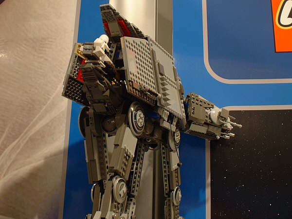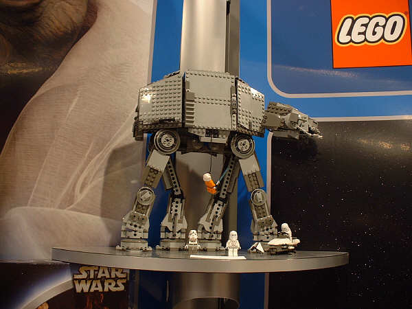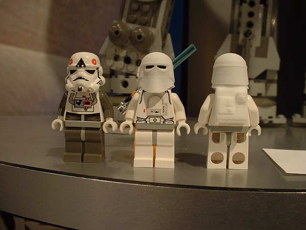 For the most part, I’m sticking to the unreleased stuff here, and assuming everyone has seen images (or even sets) for most of the January models. Of the new stuff, first up is the AT-AT, since this is probably going to be the most drool-inducing set on the average retail store shelf this year. Part of that has to do with the fact that SW fans have been eagerly anticipating an AT-AT since the SW license was first announced, and part of that has to do with the two new mini-figs that are being introduced. The AT-AT driver is essentially the same as the older TIE Fighter pilot and Stormtrooper, but with different colors. The Snowtrooper, on the other hand, is so new that the showroom copies were wearing very rough looking helmets that betrayed their rapid-prototype history (notice the rings formed into the top of the helmet in the far right pic). They had a very rough grainy look to them that I’m sure will be cleaned up considerably before they start production.